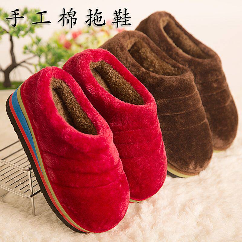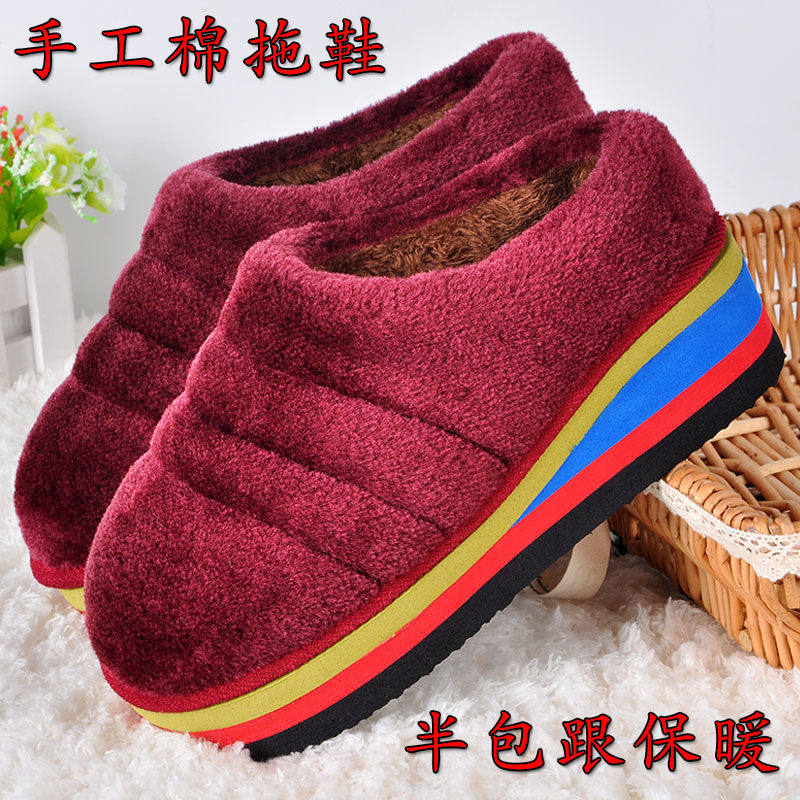 冬季棉拖鞋女高跟厚底坡跟居家保暖泡沫底松糕底半包跟手工棉拖鞋