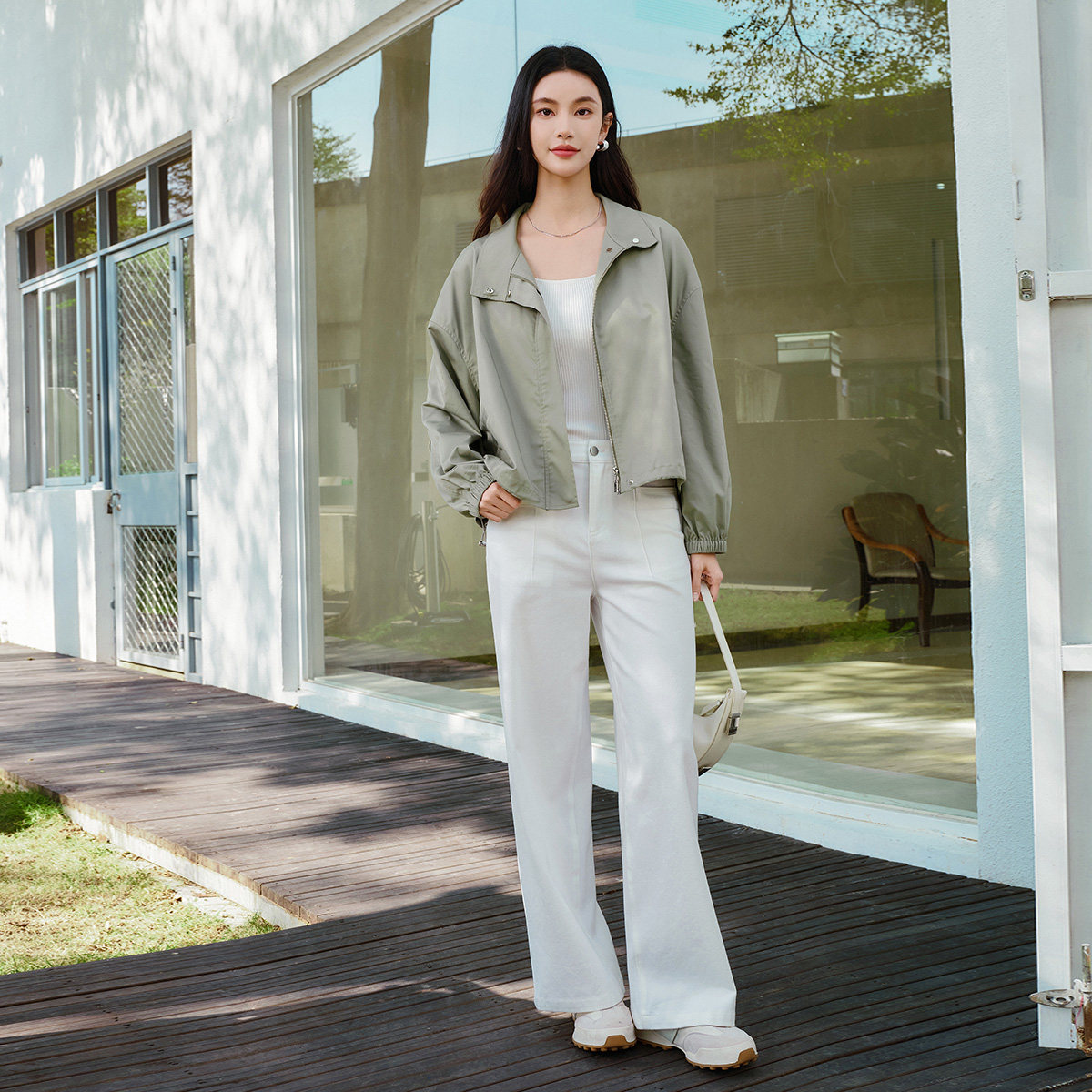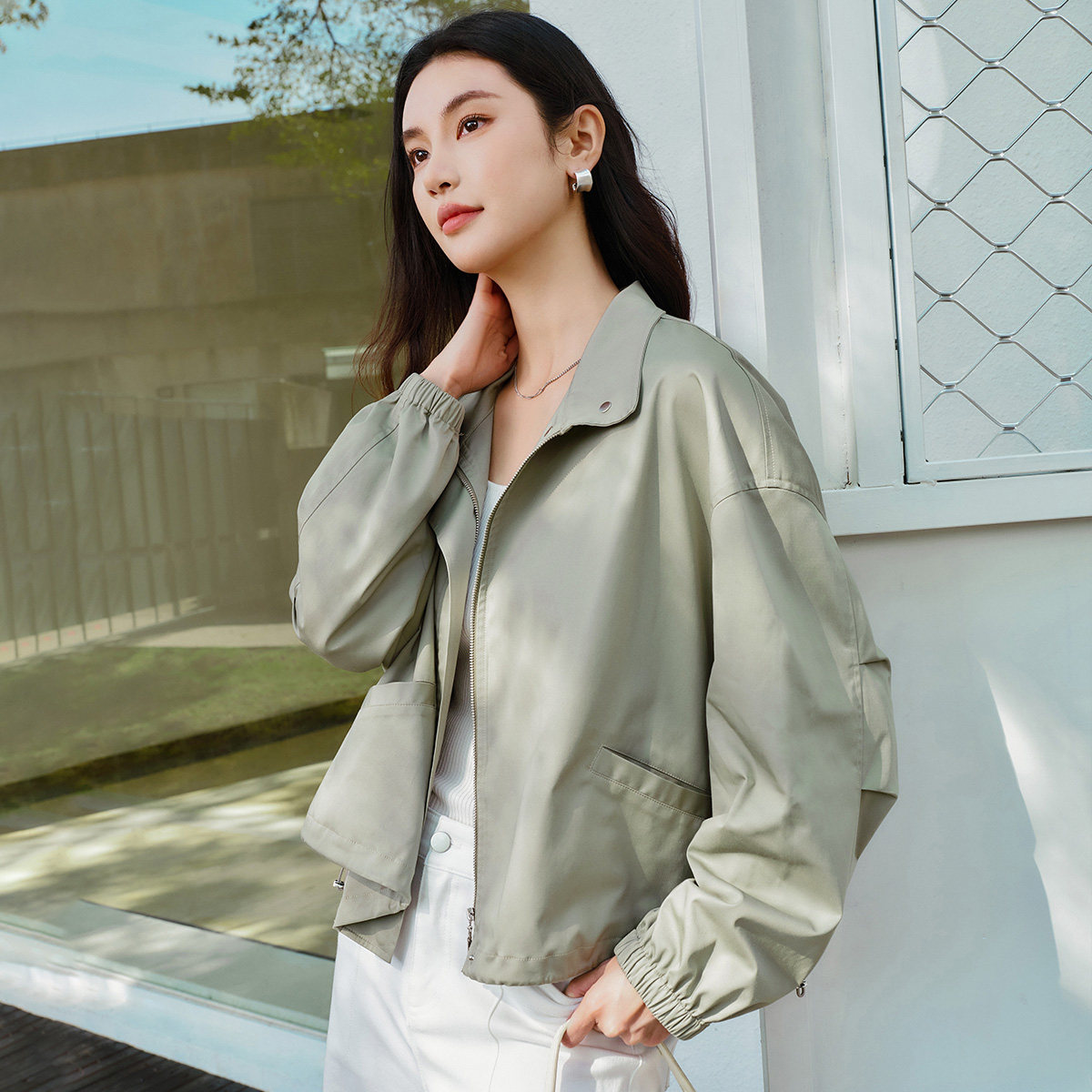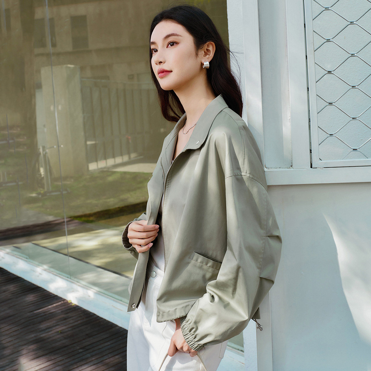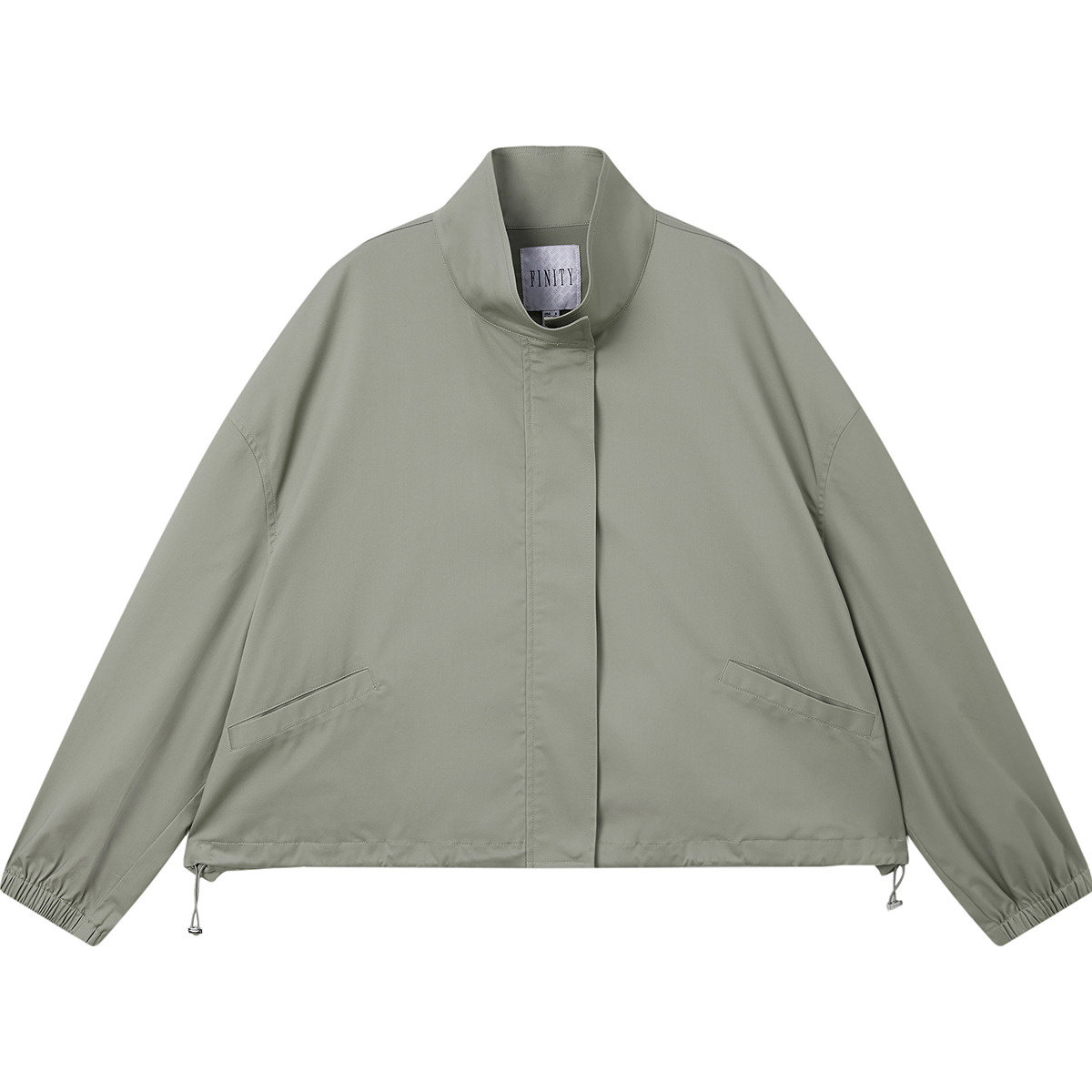 FINITY菲妮迪桑蚕丝短外套2026春新款简约灰绿真丝翻领通勤上衣女
