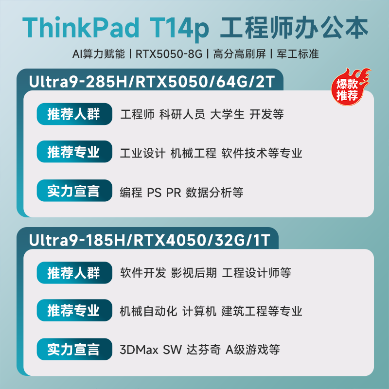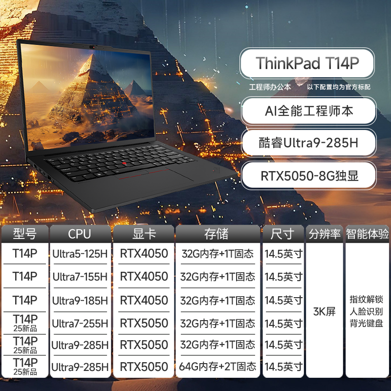 【咨询有礼】联想ThinkPad T14p 2025新款酷睿Ultra7/9 14英寸超轻薄商务办公设计师独显笔记本电脑官方旗舰