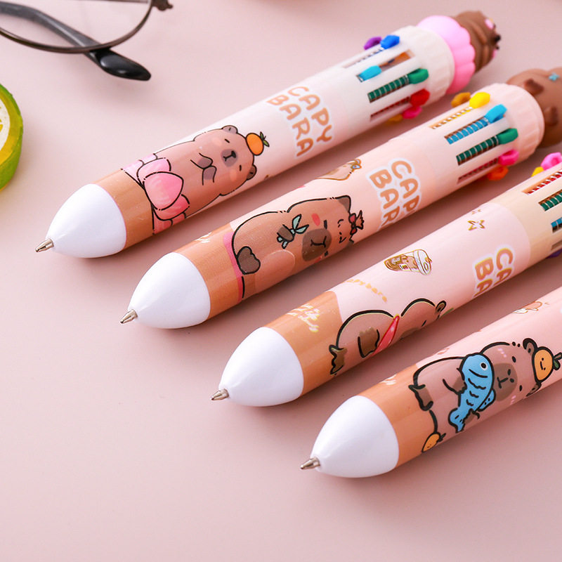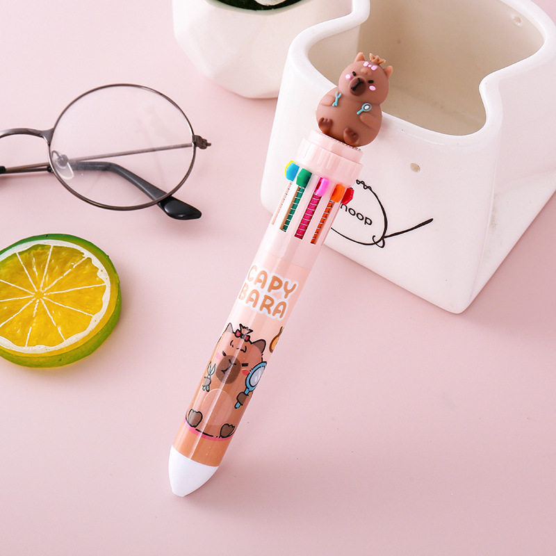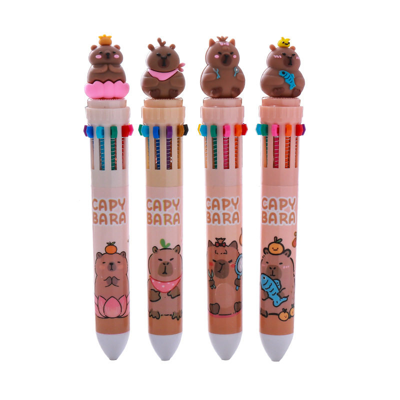 卡皮巴拉十色圆珠笔多功能笔多色合一中性笔学生标记号做笔记专用