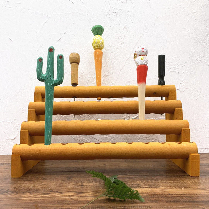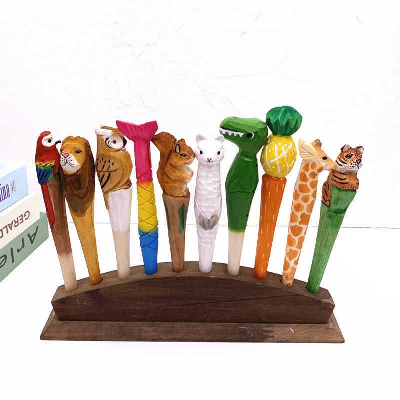 创意木雕笔纯手工动物笔原木雕刻木头工艺礼品笔架子办公文具新品