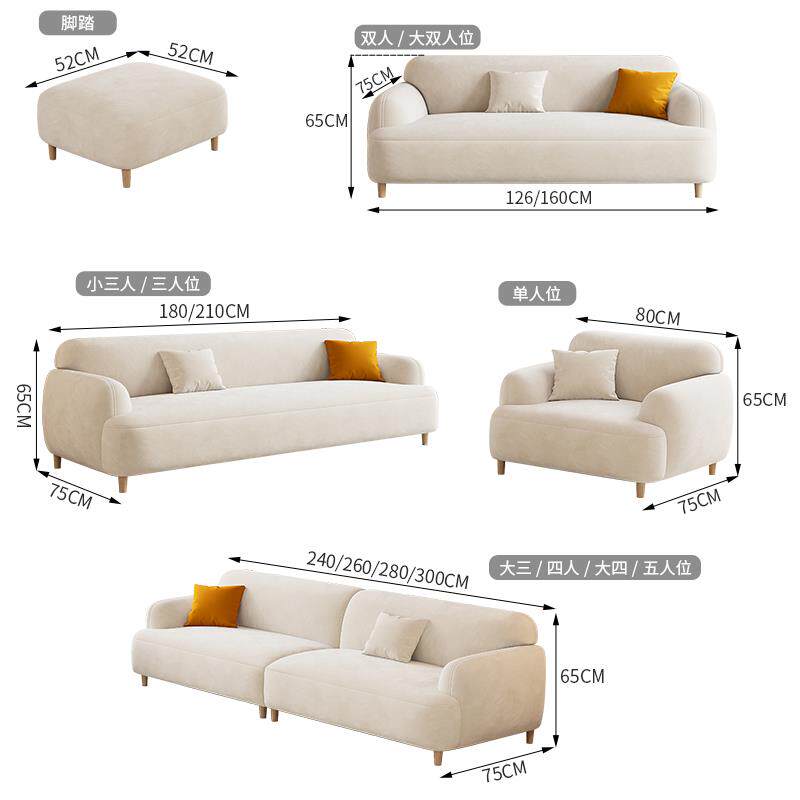 现代北欧简约家用布艺沙发小户型出租屋客厅奶油风卧室直排小沙发
