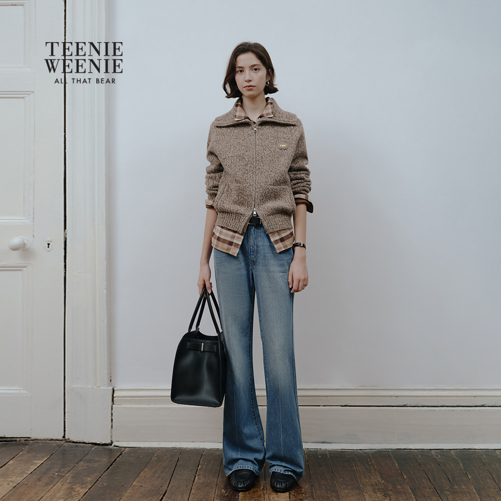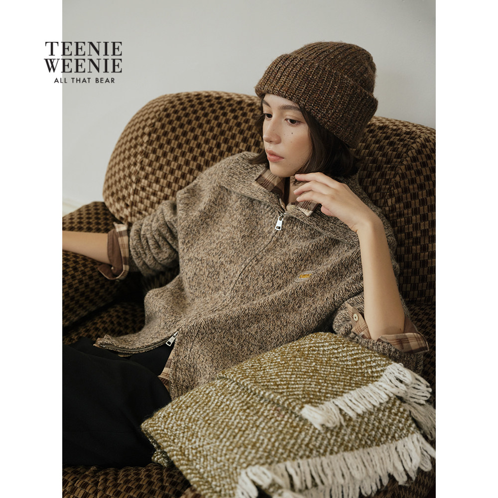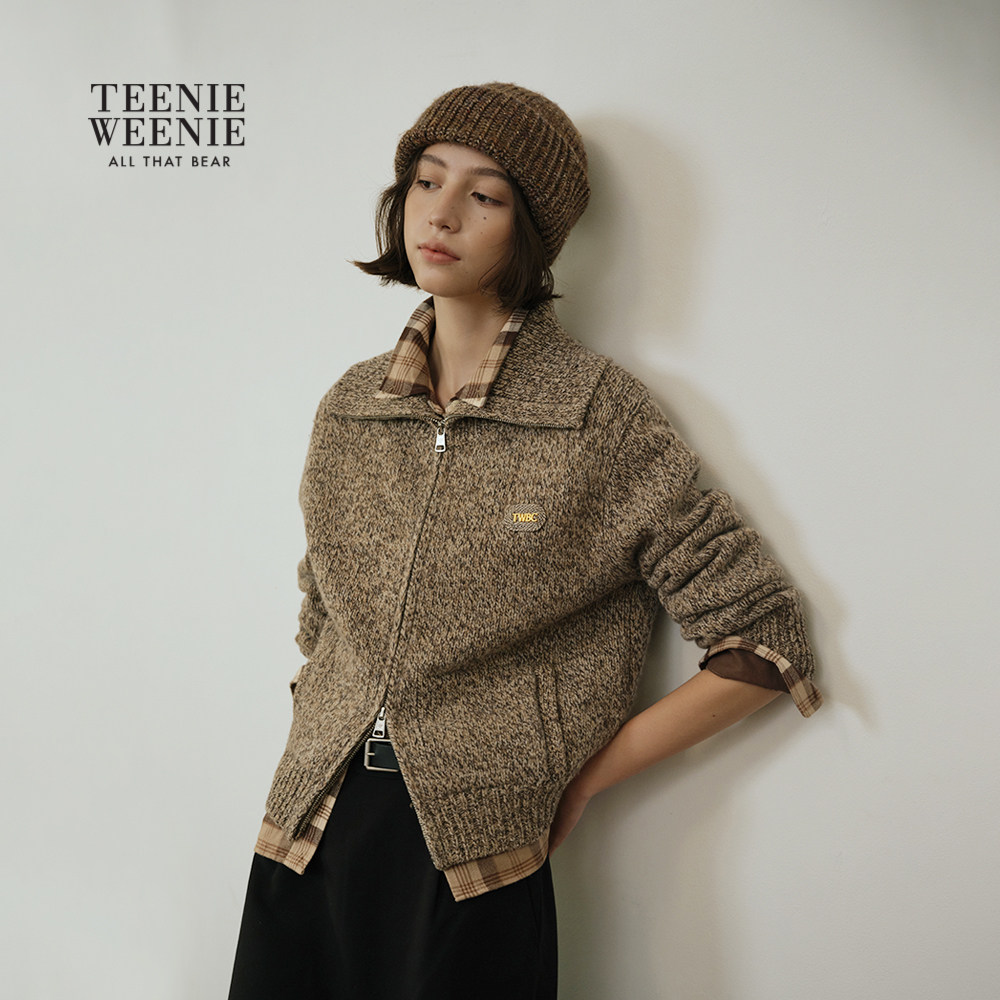 TeenieWeenie小熊女装毛针织衫2025冬季新款复古时尚翻领毛衣开衫