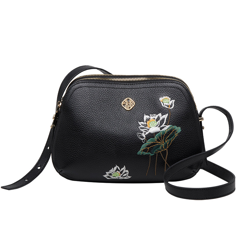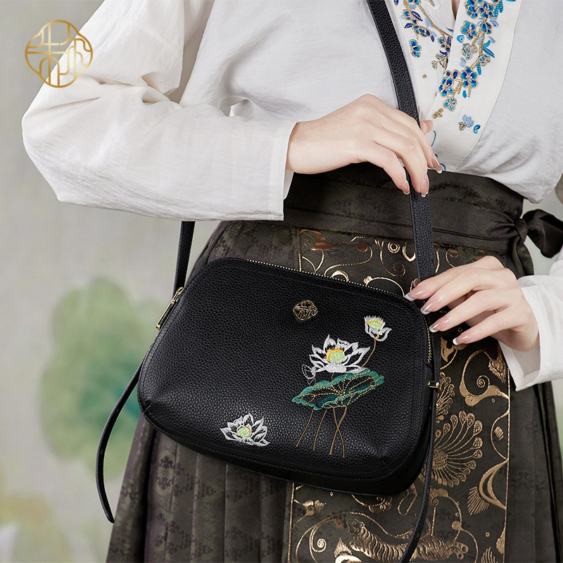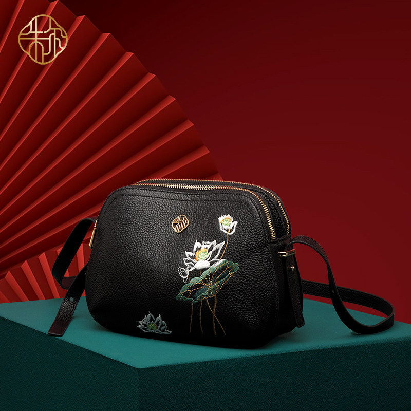 朱尔国风真皮包包女式2025新款大气女士斜挎包刺绣妈妈包单肩精致