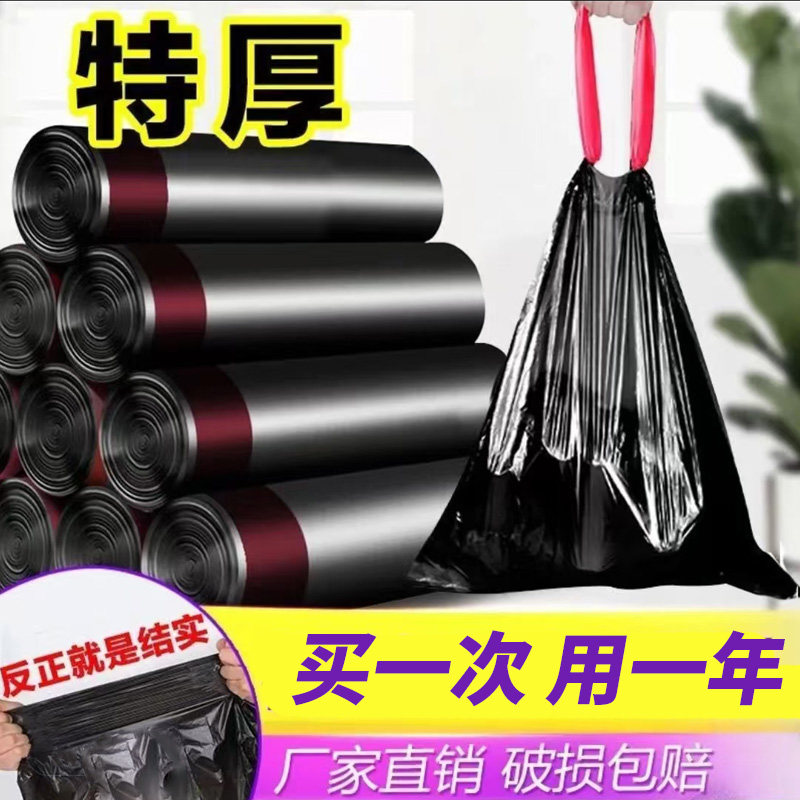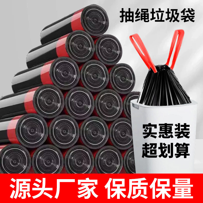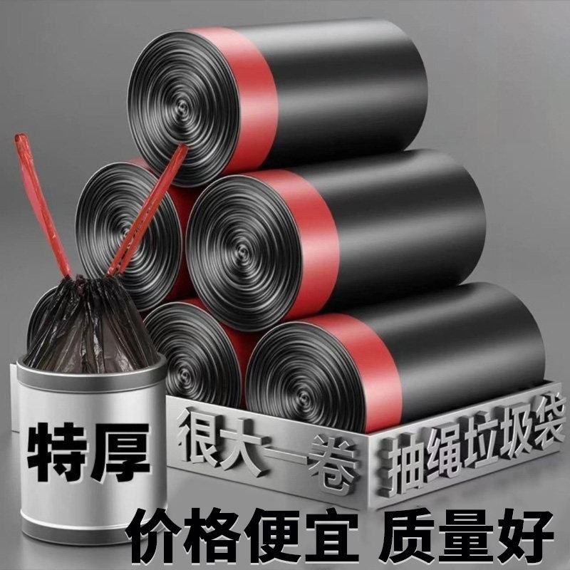 加厚垃圾袋手提抽绳式家用厨房特厚平口式塑料袋实惠装黑色结实