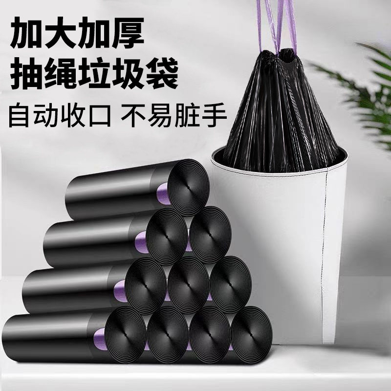家用加厚卡通抽绳式垃圾袋加厚手提厨房宿舍学生大号黑色塑料袋
