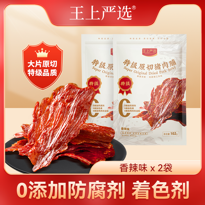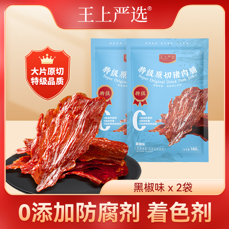 王上严选原切猪肉脯干特级大片高蛋白靖江特产休闲零食102g