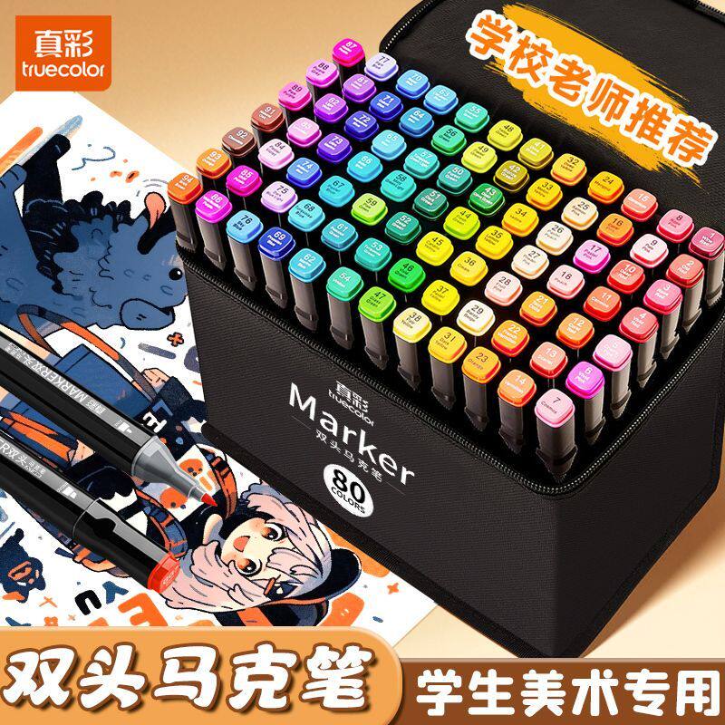 真彩马克笔48色双头油性水彩笔速干马克笔正版套装小学生儿童专用手绘动漫设计美术绘画丙烯彩色笔涂鸦笔