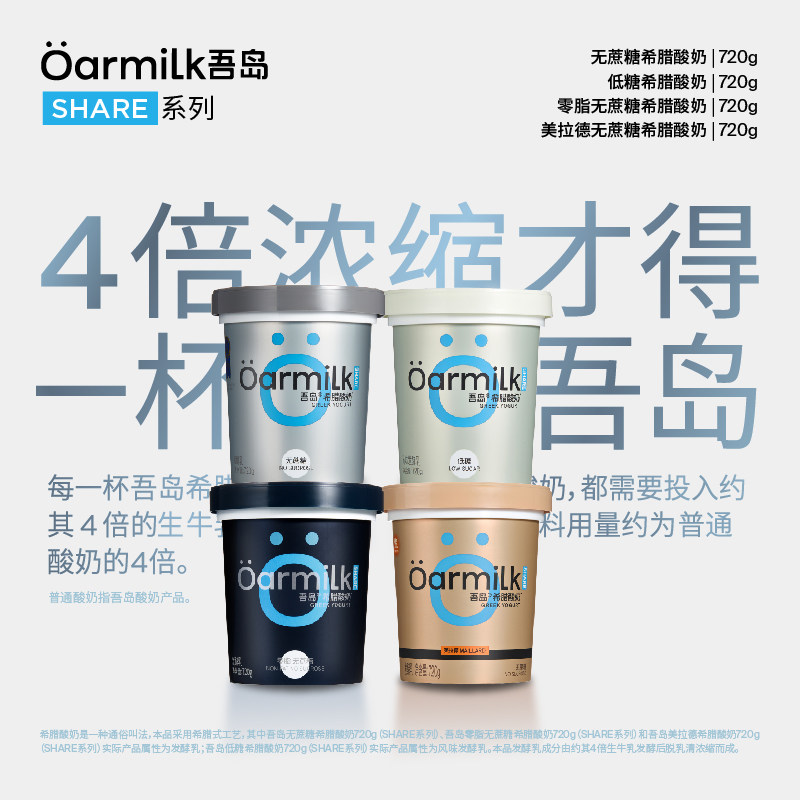 Oarmilk吾岛0脂无蔗糖希腊酸奶720g装风味希腊酸牛奶益生菌发酵乳