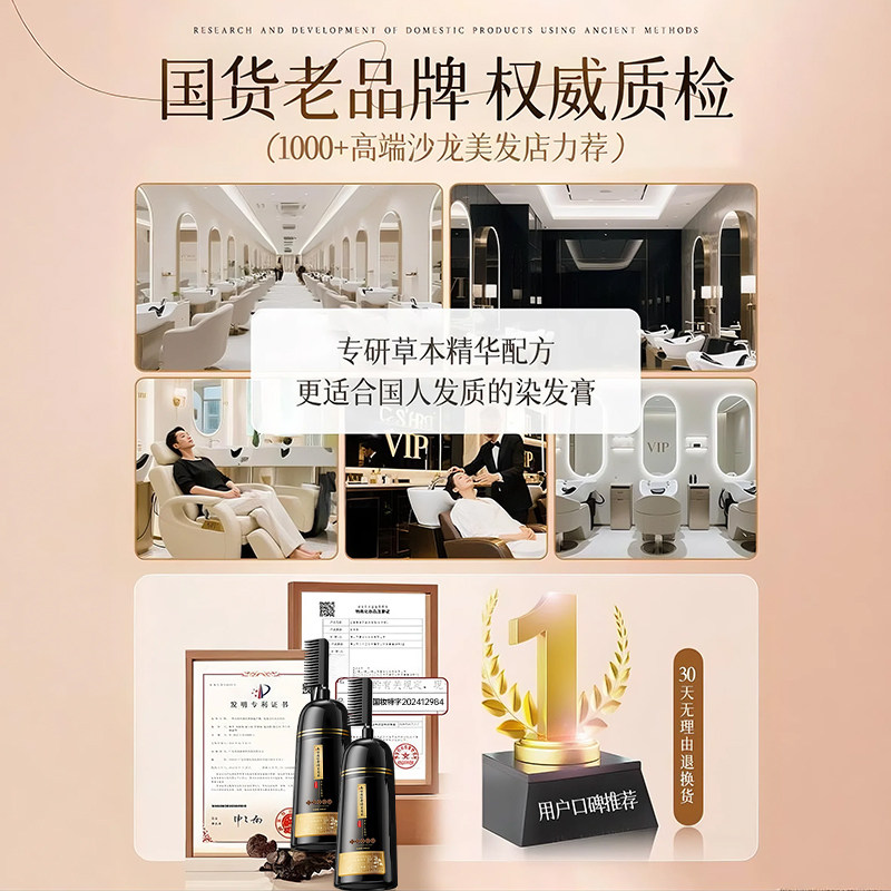 一梳黑染发膏剂纯植物天然无刺激孕妇可用遮白男女官方旗舰店正品