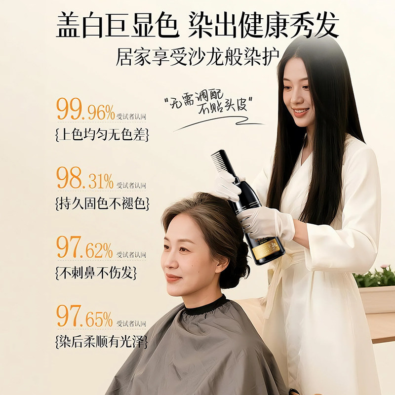 韩金靓正品染发剂黑茶色棕植物泡泡刺激无纯自己在家染发膏盖白女