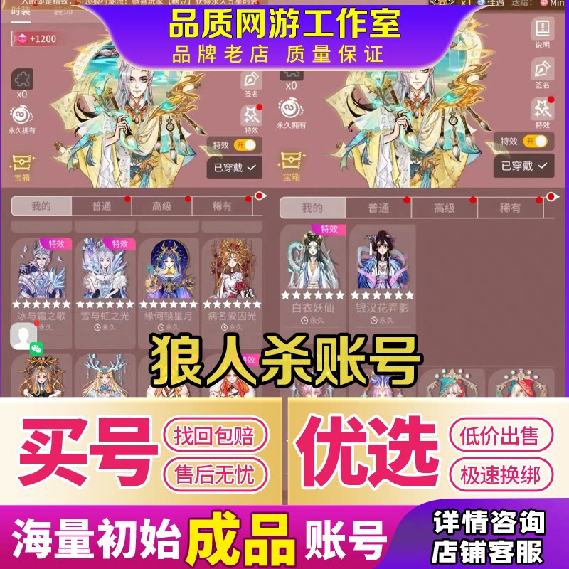狼人杀帐号网易官方五阶六阶六星时装动态百万人气号魅力成品账号