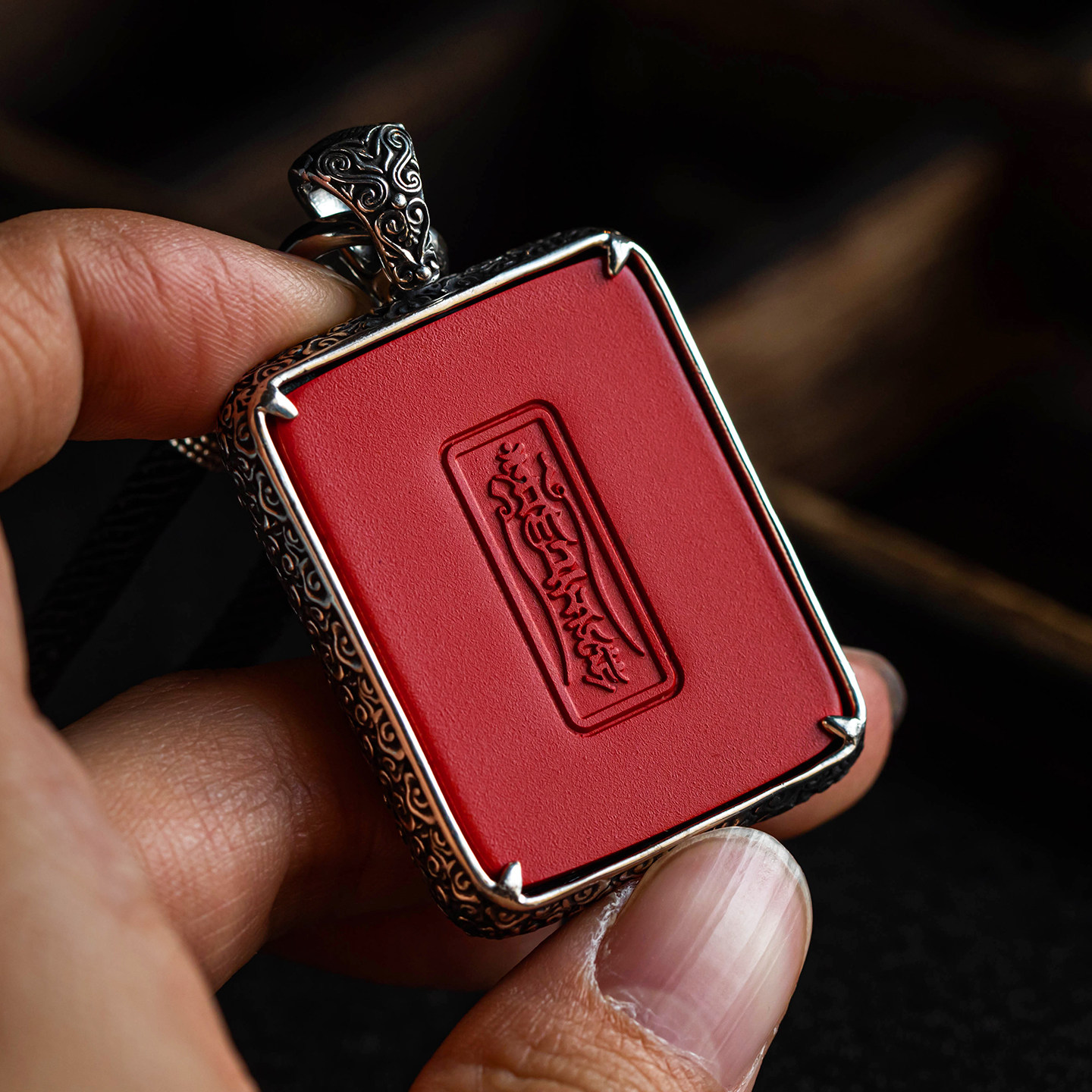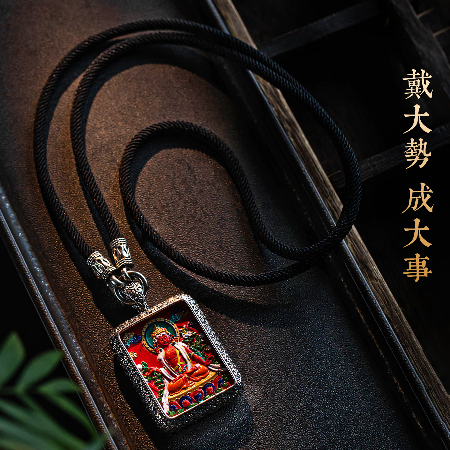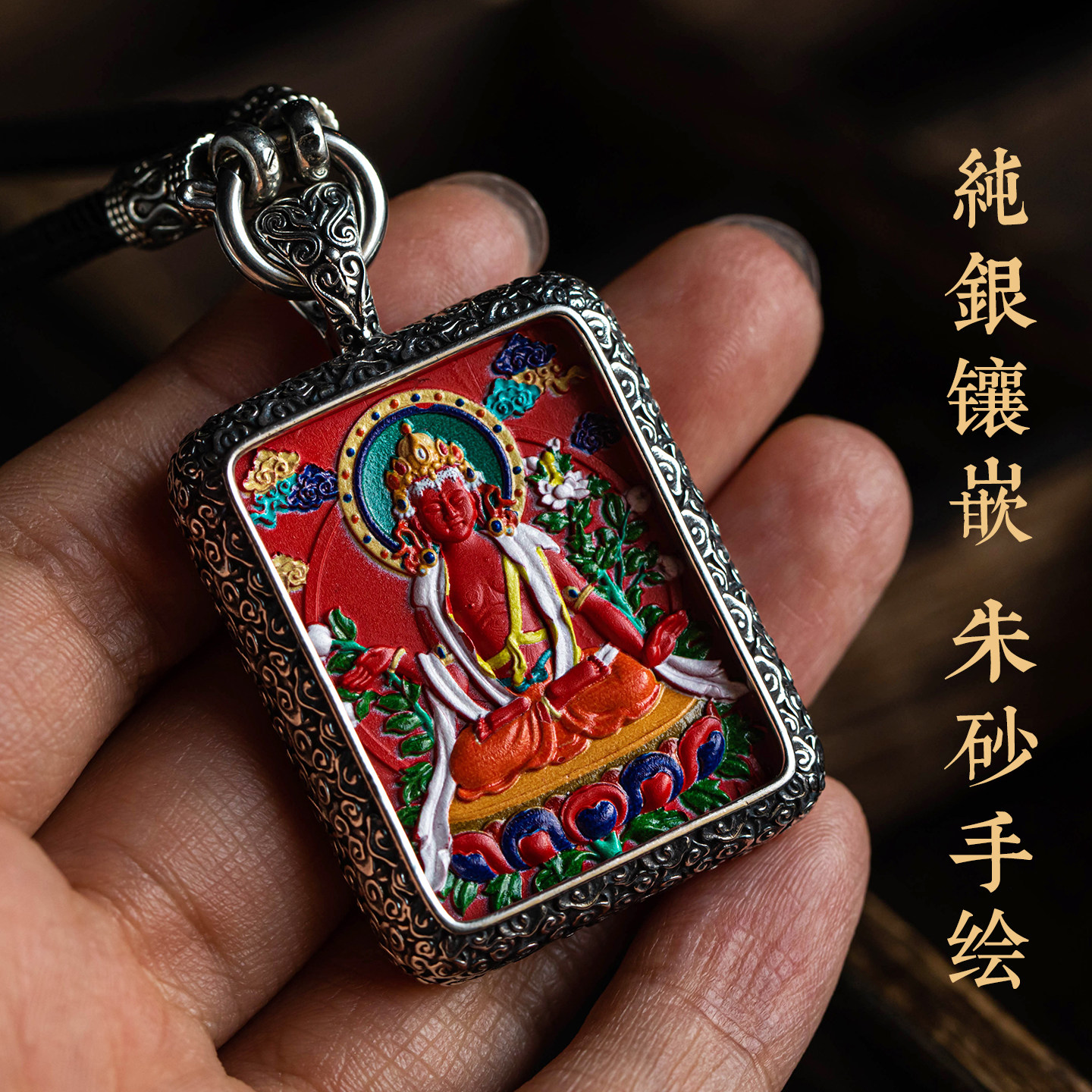 大善堂重工纯银藏式唐卡吊坠朱砂马年项链属马本命佛手绘国风饰品