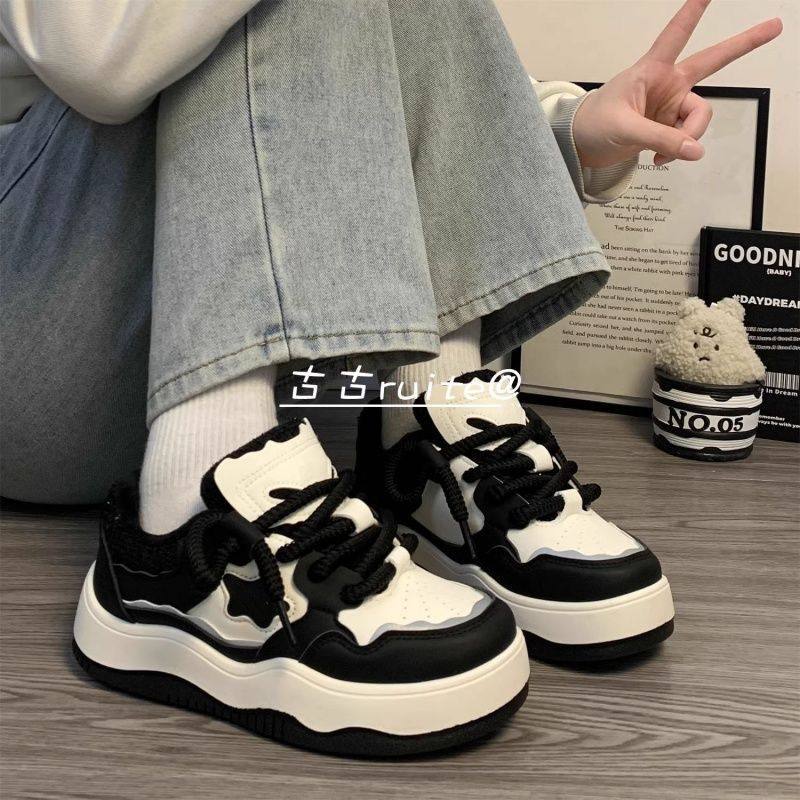 易少年 厚底德训板鞋女ins潮2025冬季新款港风小众百搭休闲小白鞋