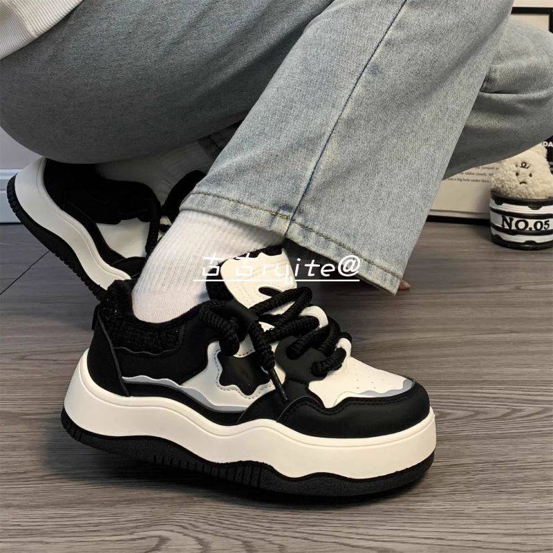 【明星同款】Wander around春秋款黑色厚底增高休闲板鞋男女同款