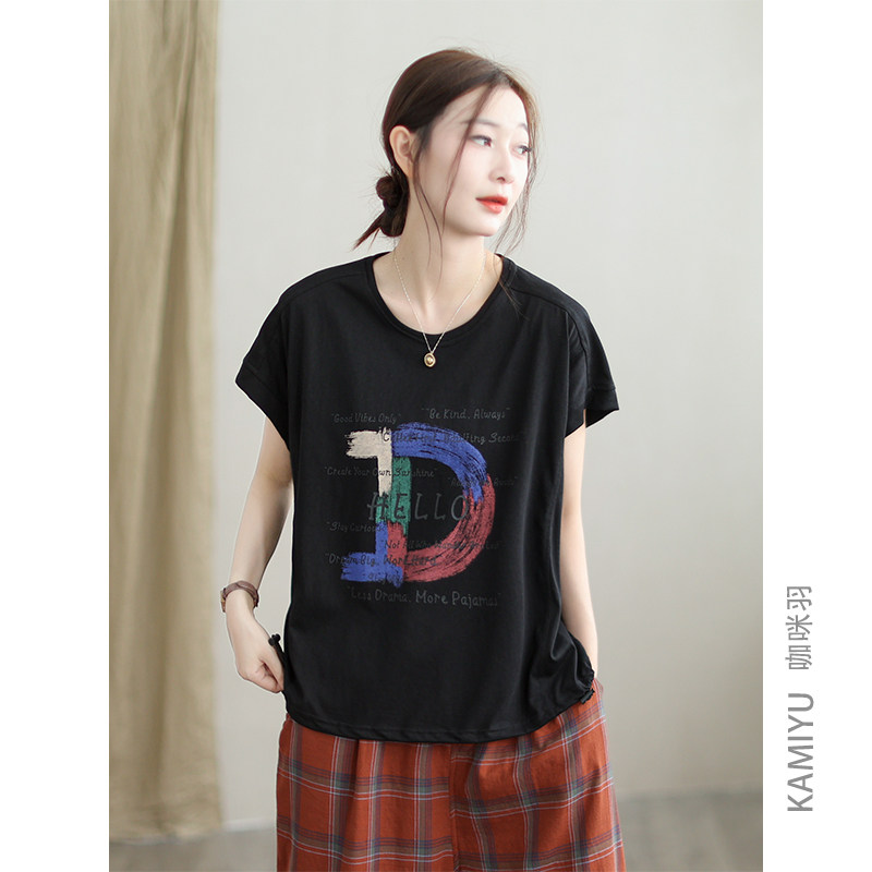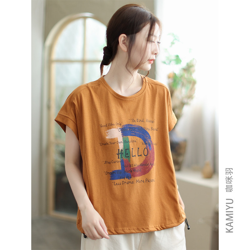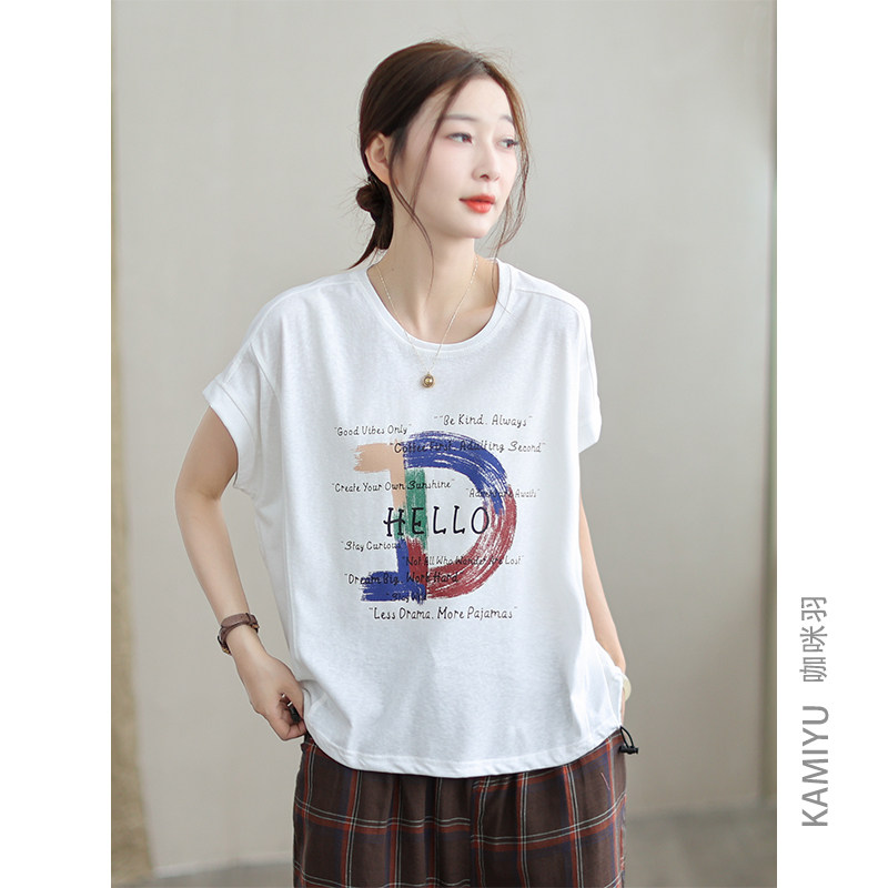 咖咪羽短袖女夏季新款圆领纯色休闲字母印花宽松百搭时尚女装T恤