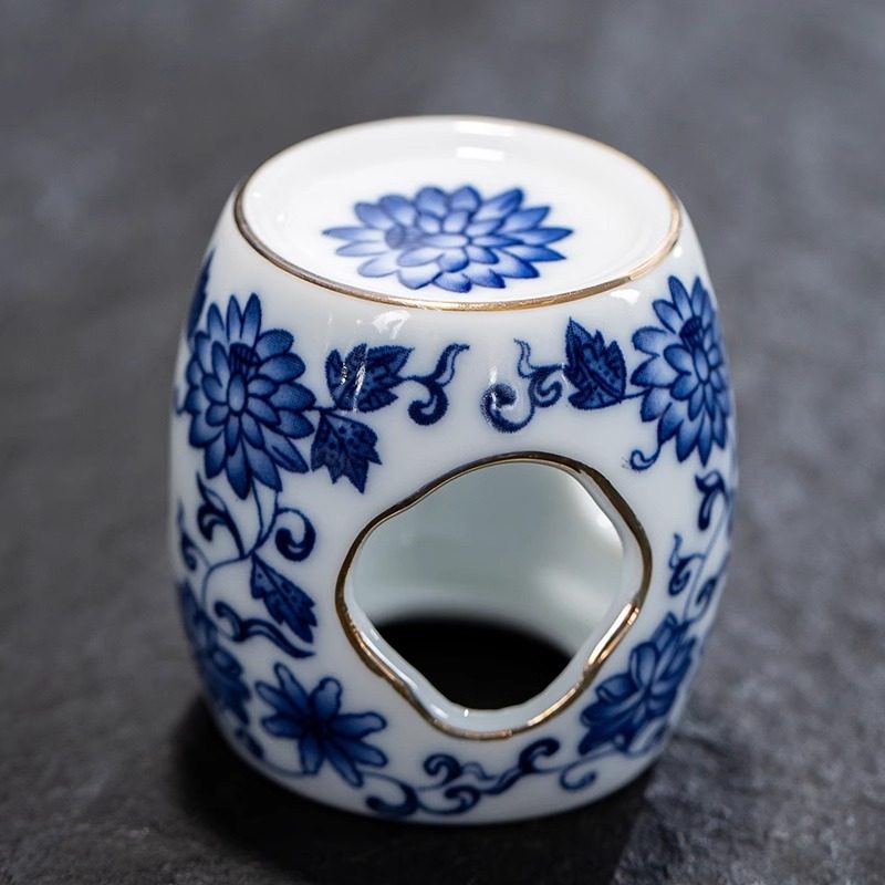 复古青花瓷茶器盖置仿古陶瓷壶承盖托白瓷茶具茶道配件茶玩摆件