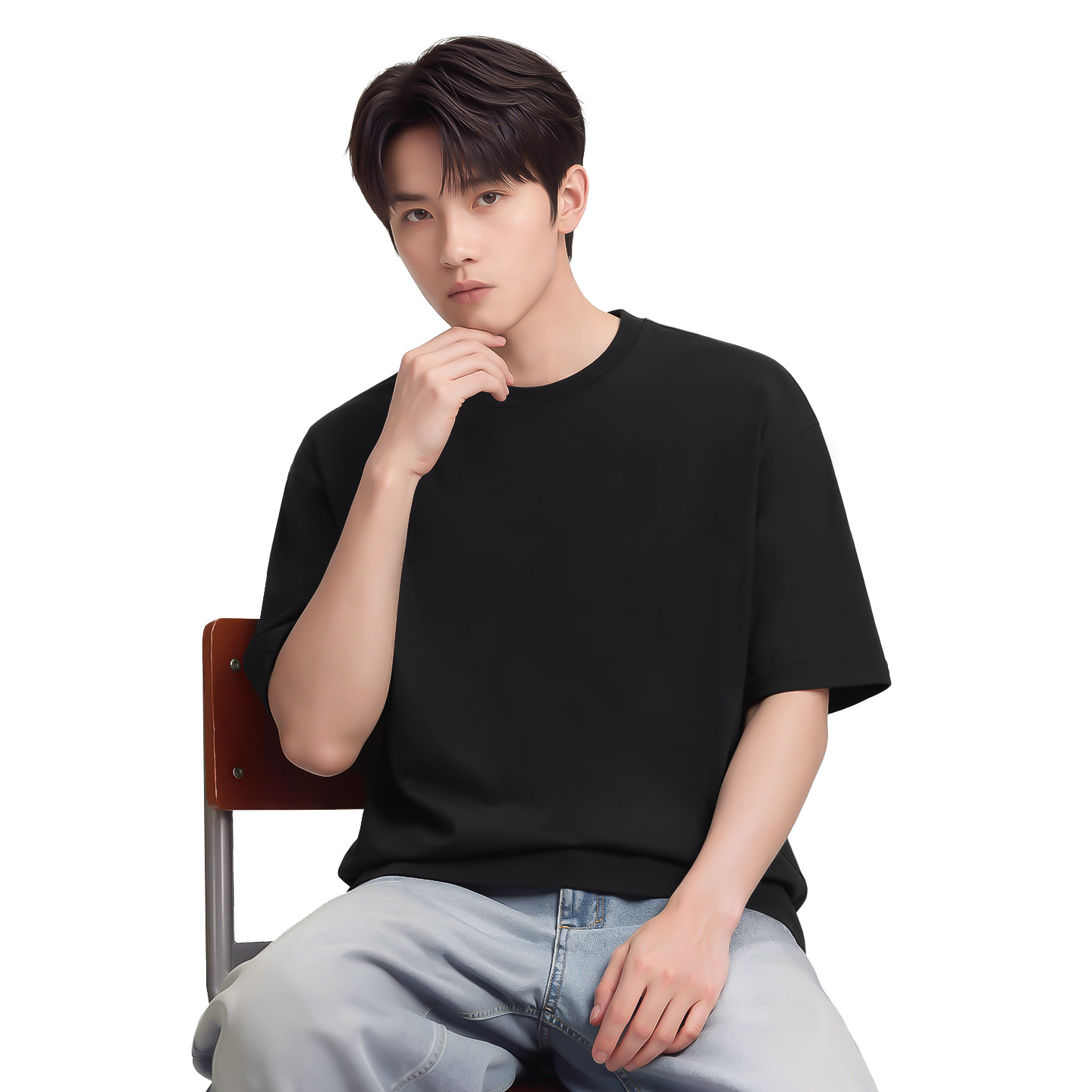 小尼力重磅纯色打底衫纯棉oversize白色短袖T恤男夏季体恤上衣服
