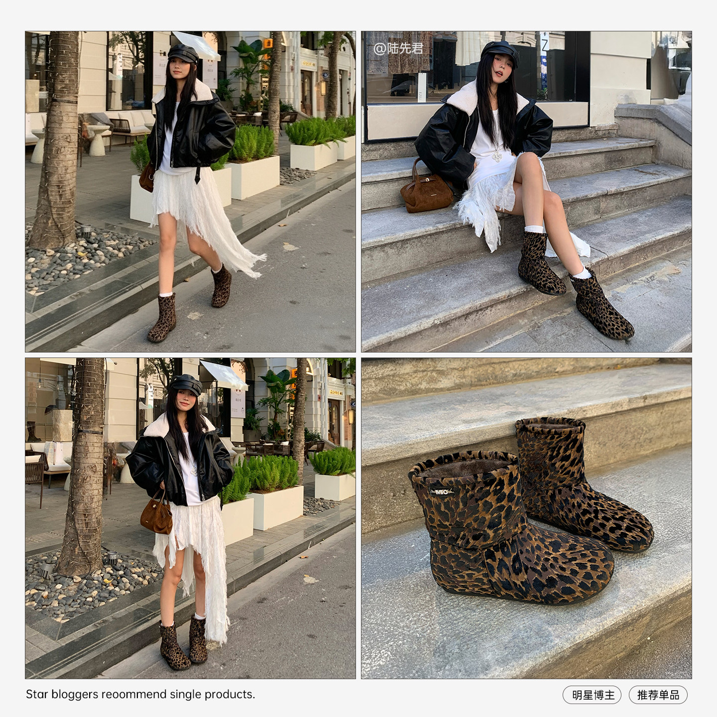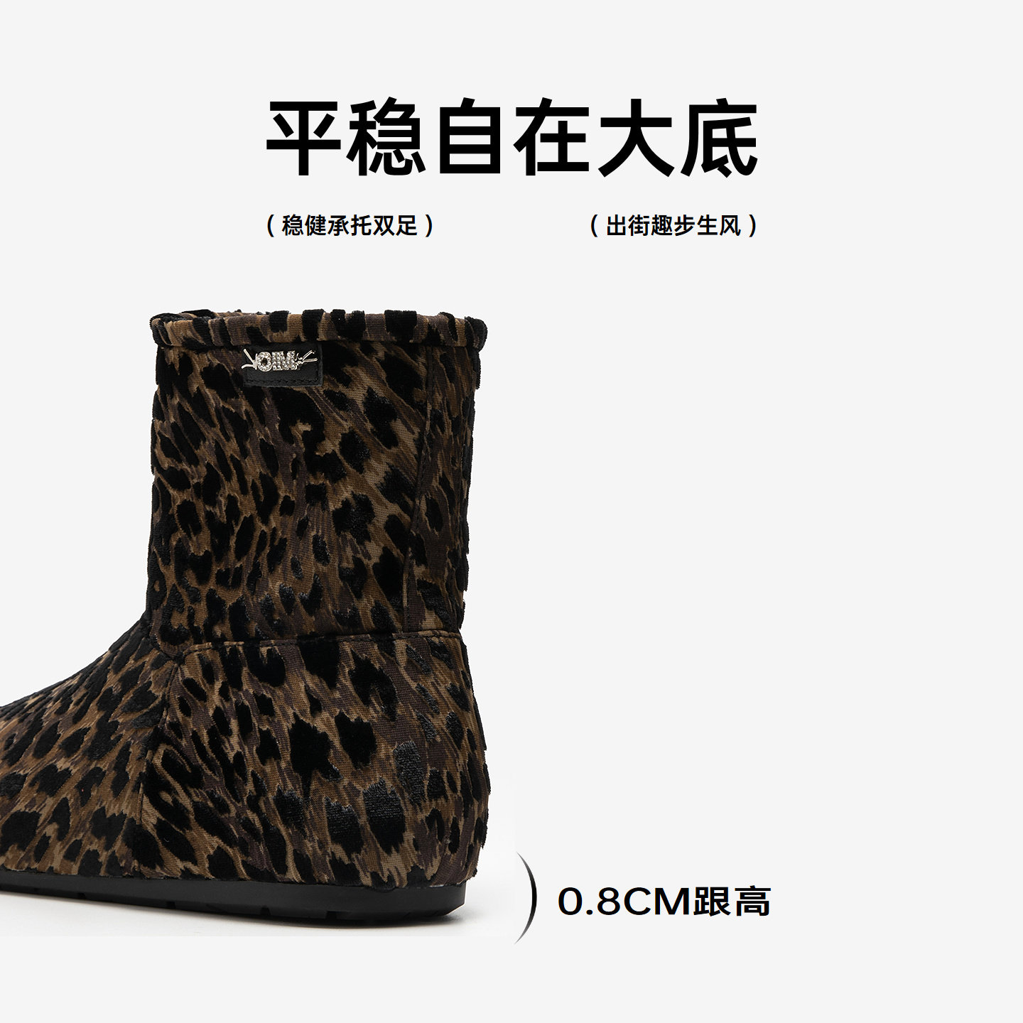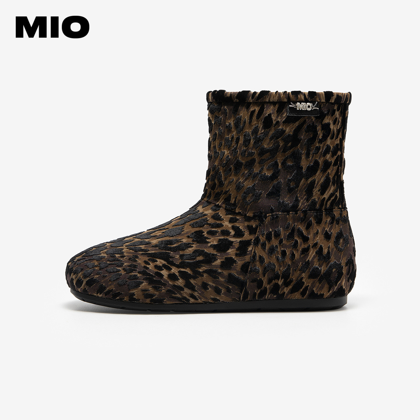 MIO米奥时尚雪地靴2025冬季新款圆头平底豹纹保暖舒适短筒女靴子