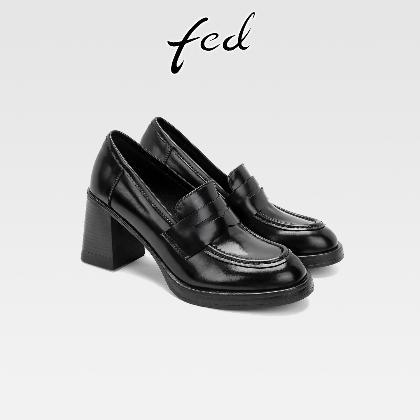 fed真皮粗跟厚底乐福鞋女复古小皮鞋一脚蹬圆头高跟深口通勤单鞋