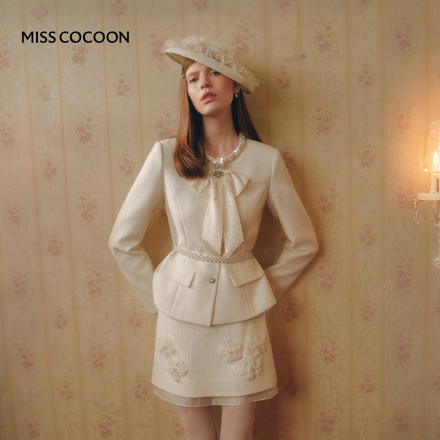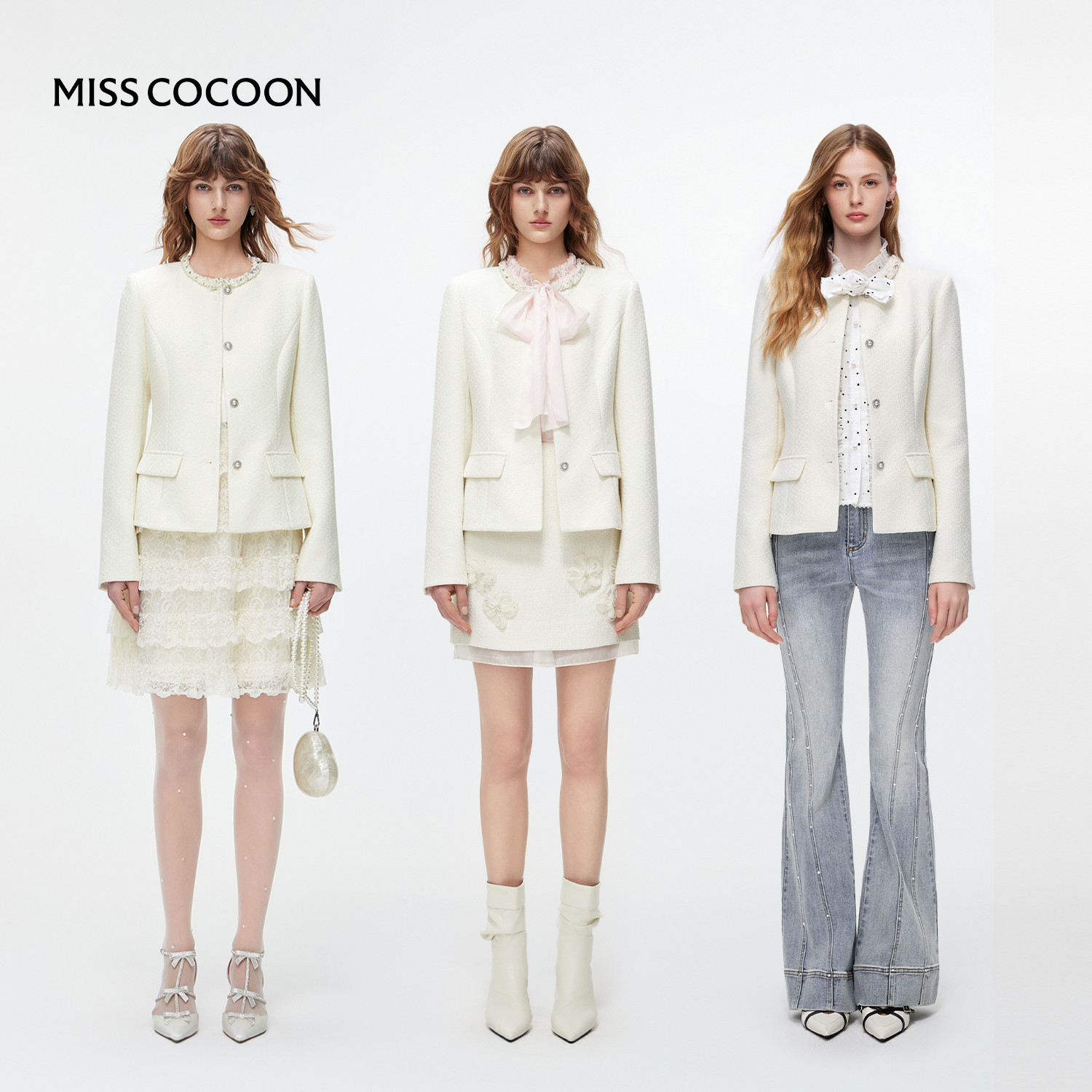 MISSCOCOON可可尼收腰圆领上衣女2026春季新款小香风蝴蝶结短外套