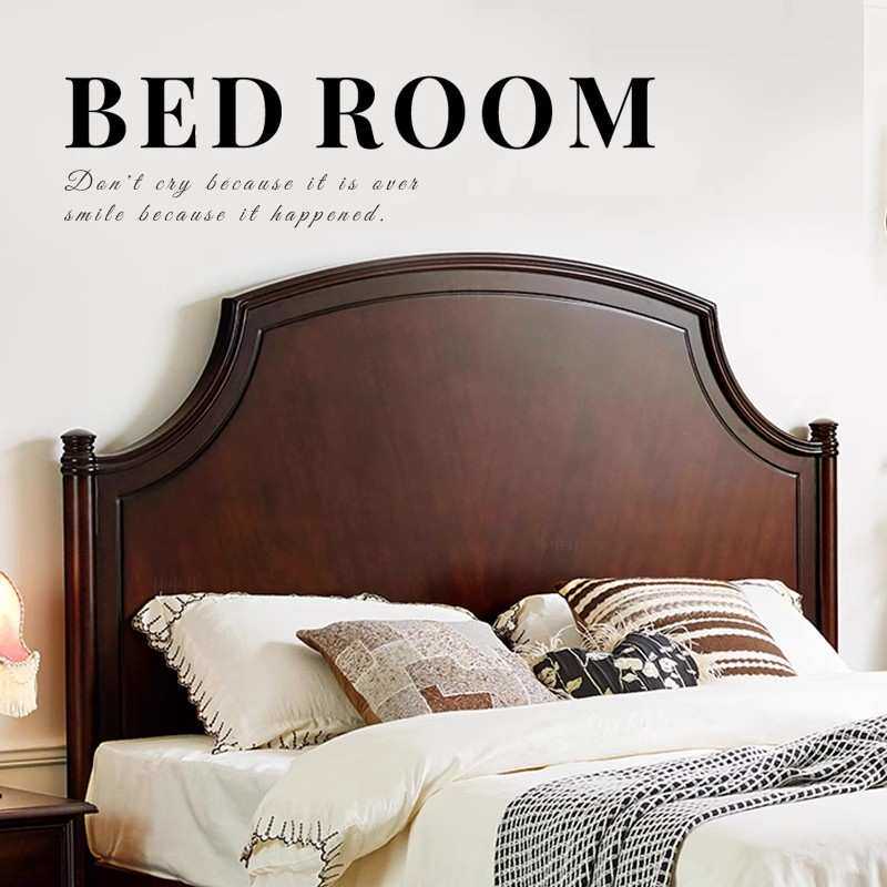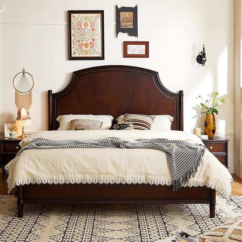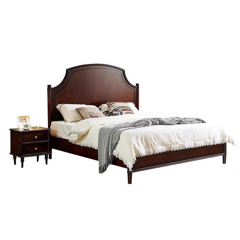中古风实木床主卧高档轻奢简约硬靠双人大床美式复古1.8m框架婚床