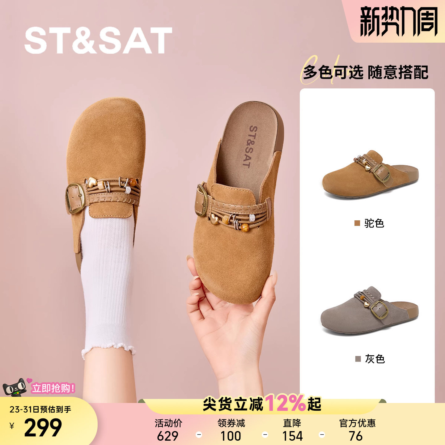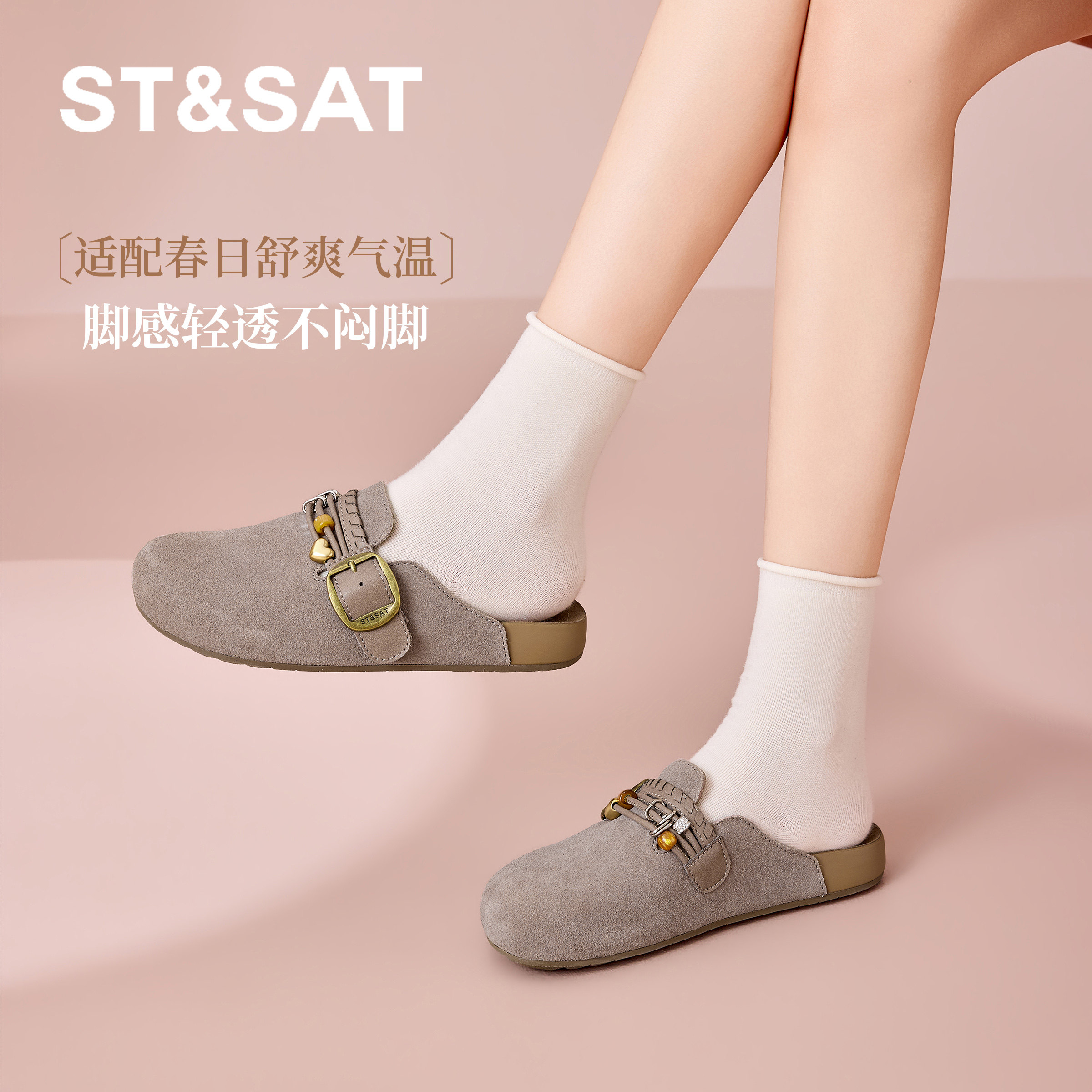 星期六外穿包头勃肯拖鞋低跟圆头休闲一脚蹬平底搭扣懒人鞋女鞋
