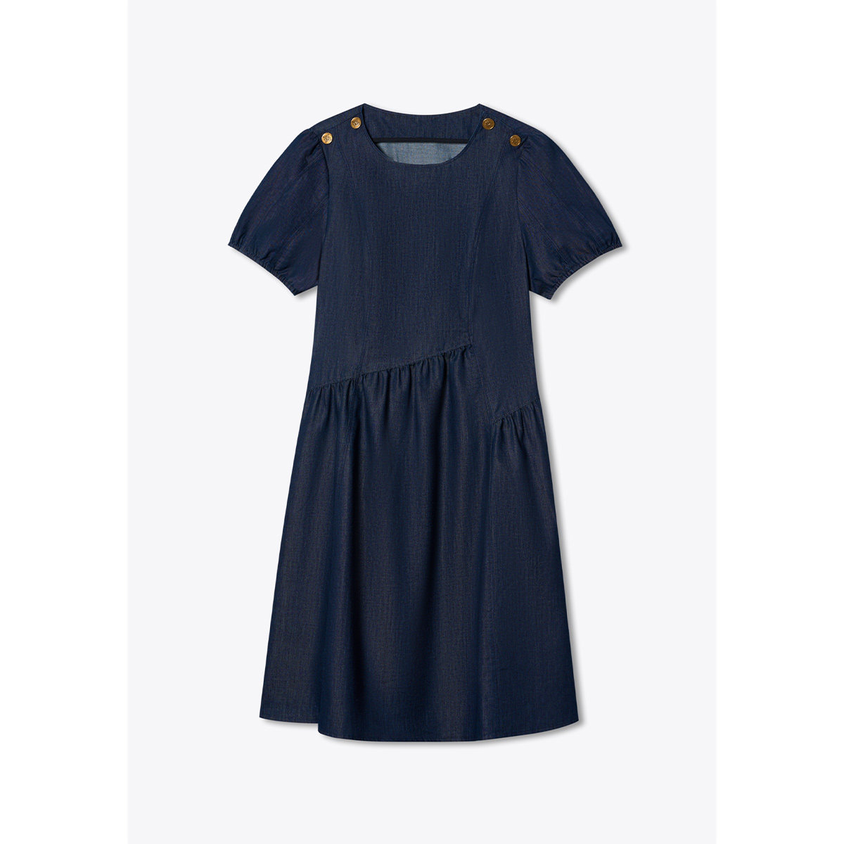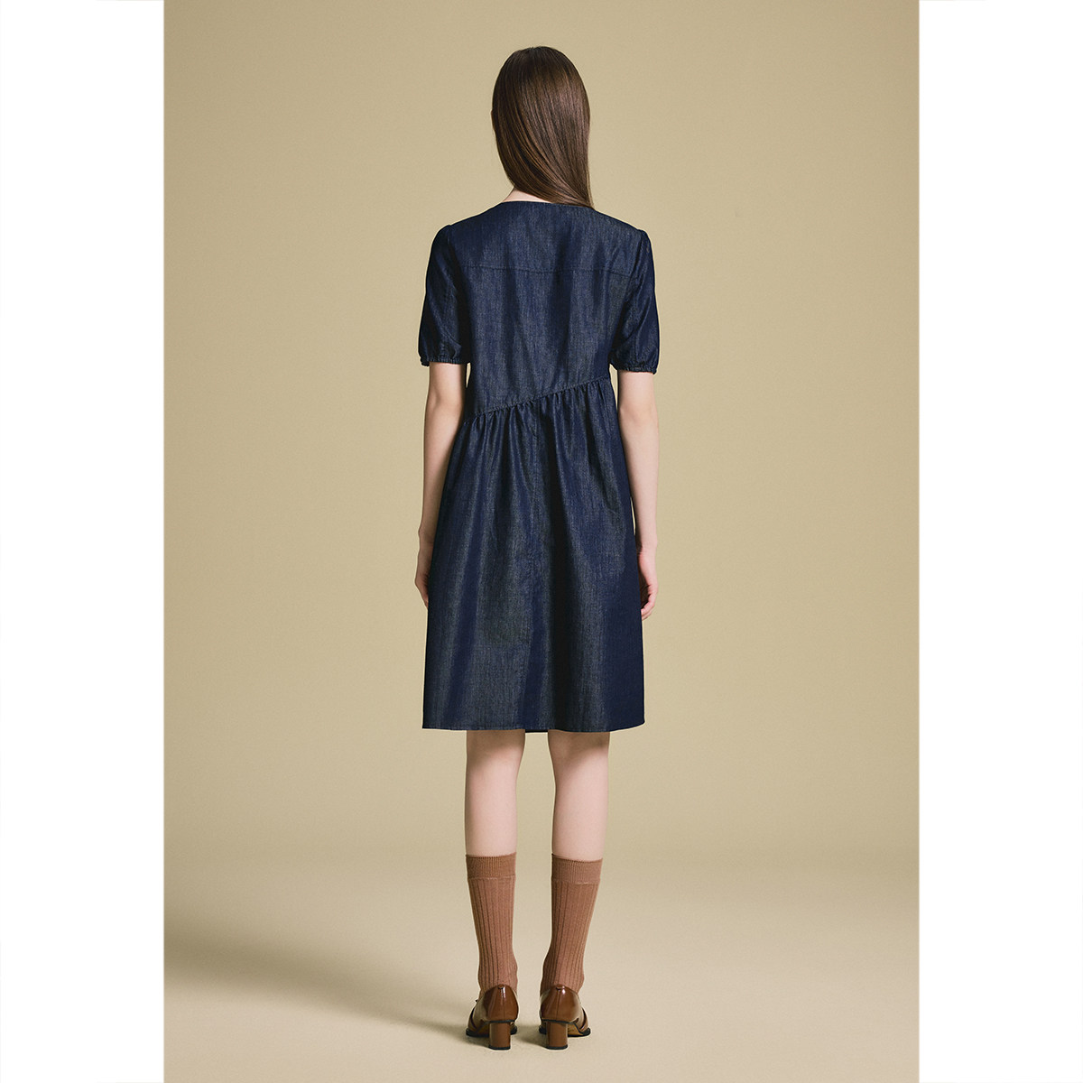 诗篇专选夏季新款宽松廓形泡泡袖圆领A字牛仔连衣裙2025夏款
