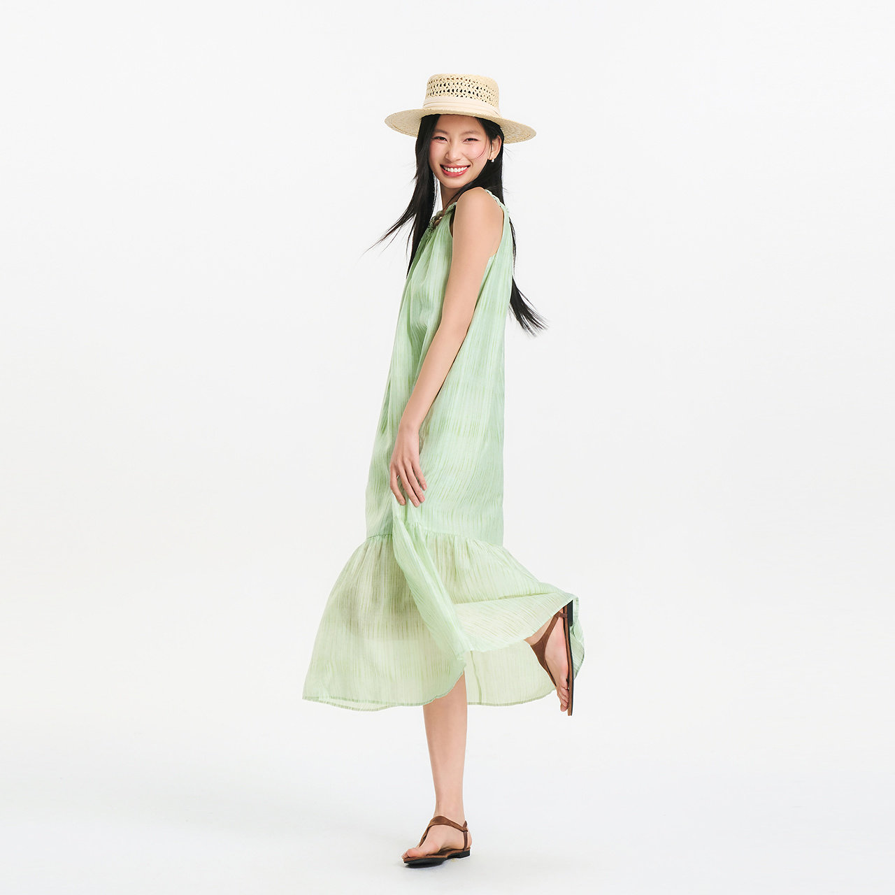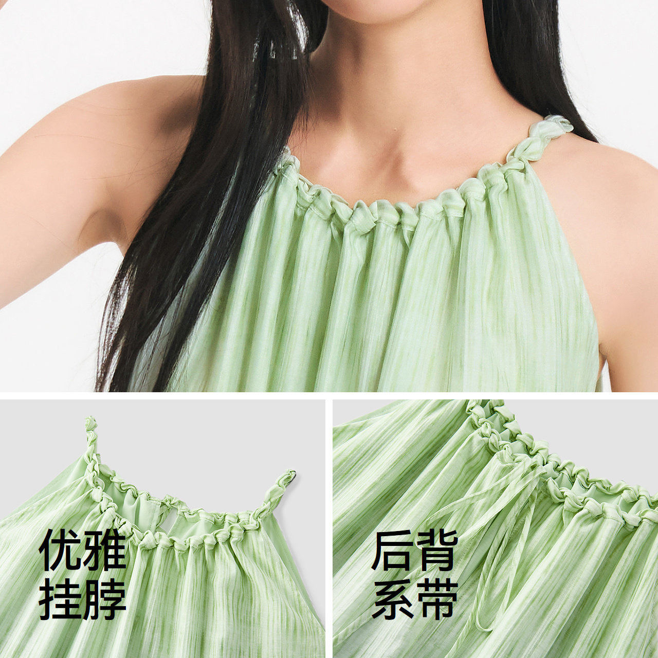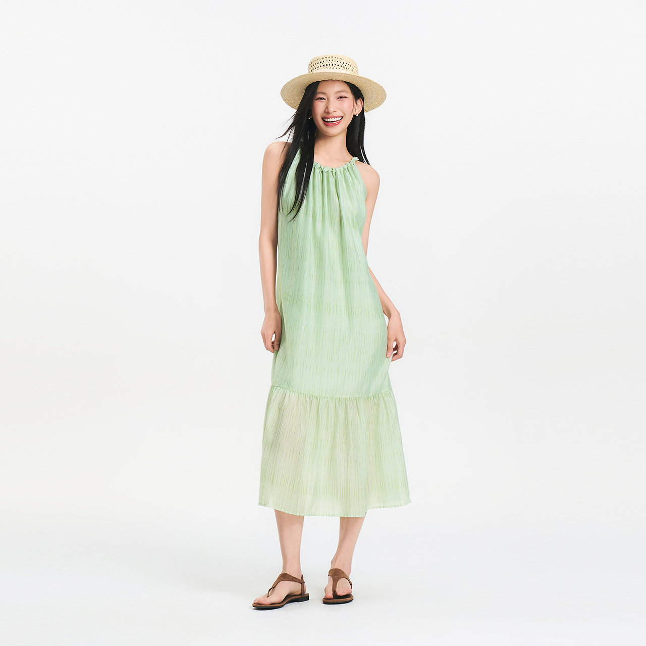 森马连衣裙女夏季蝴蝶结肌理挂脖长裙优雅度假风小清新浪漫A字裙