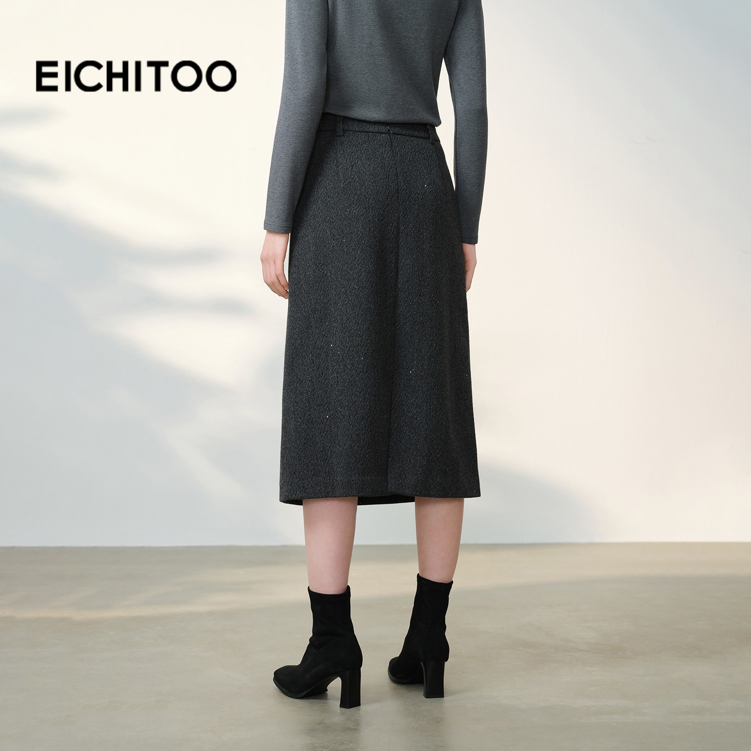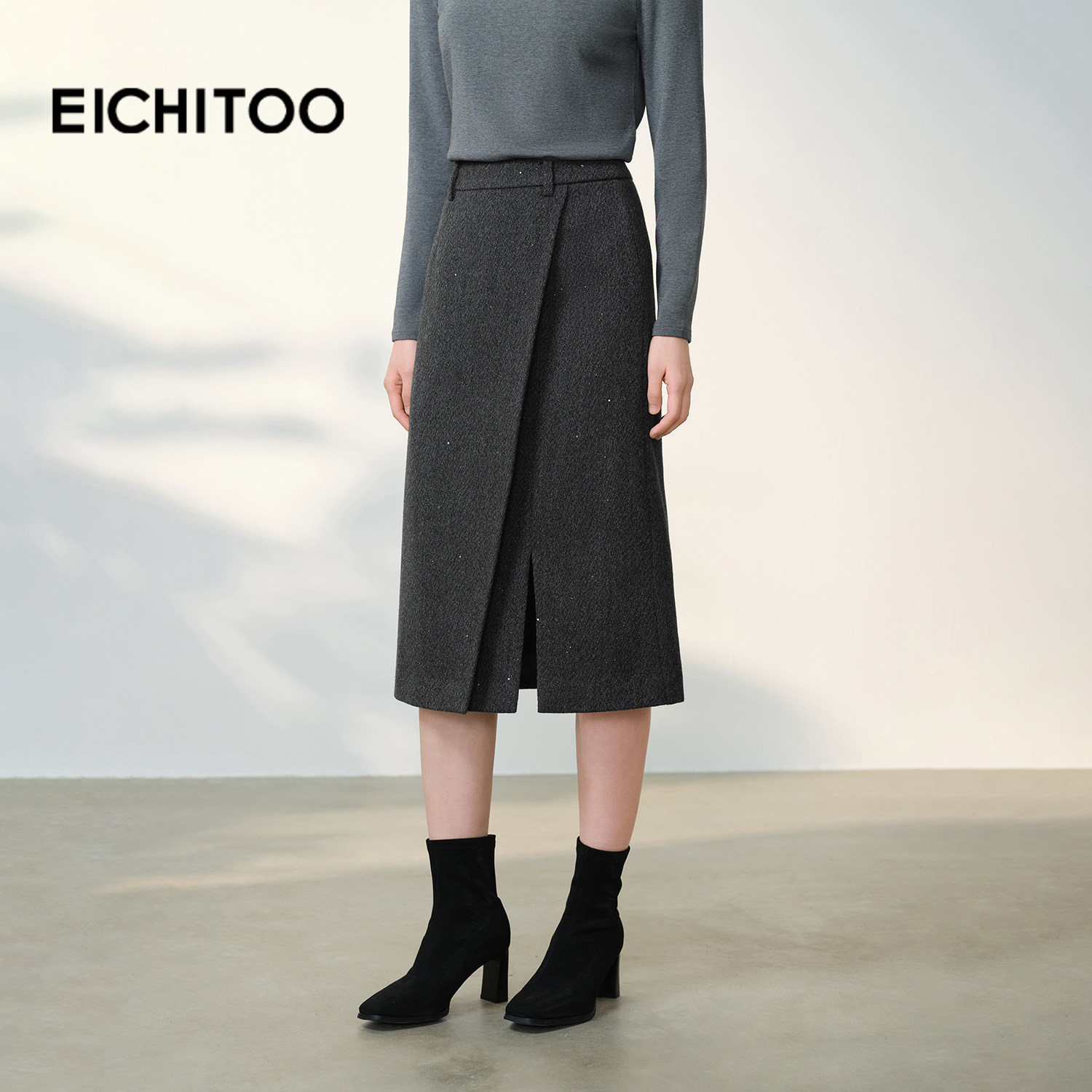 爱居兔气质A字长半身裙2025年冬季新款女设计款开叉通勤半裙