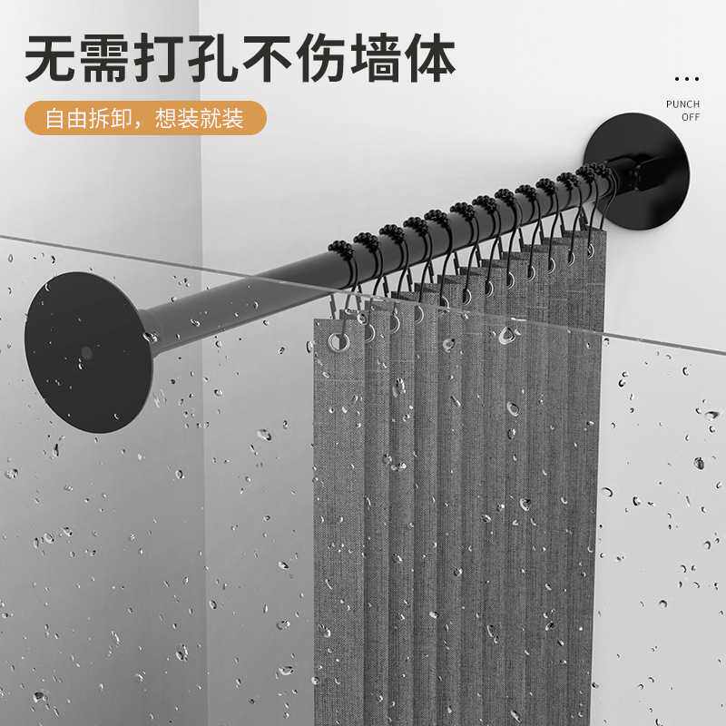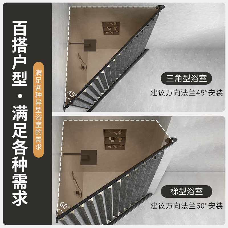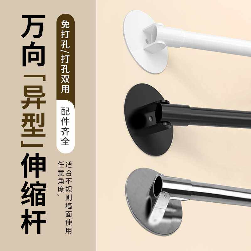 万向伸缩杆卫生间转角异型浴帘杆免打孔浴室不锈钢收缩杆斜角挂杆