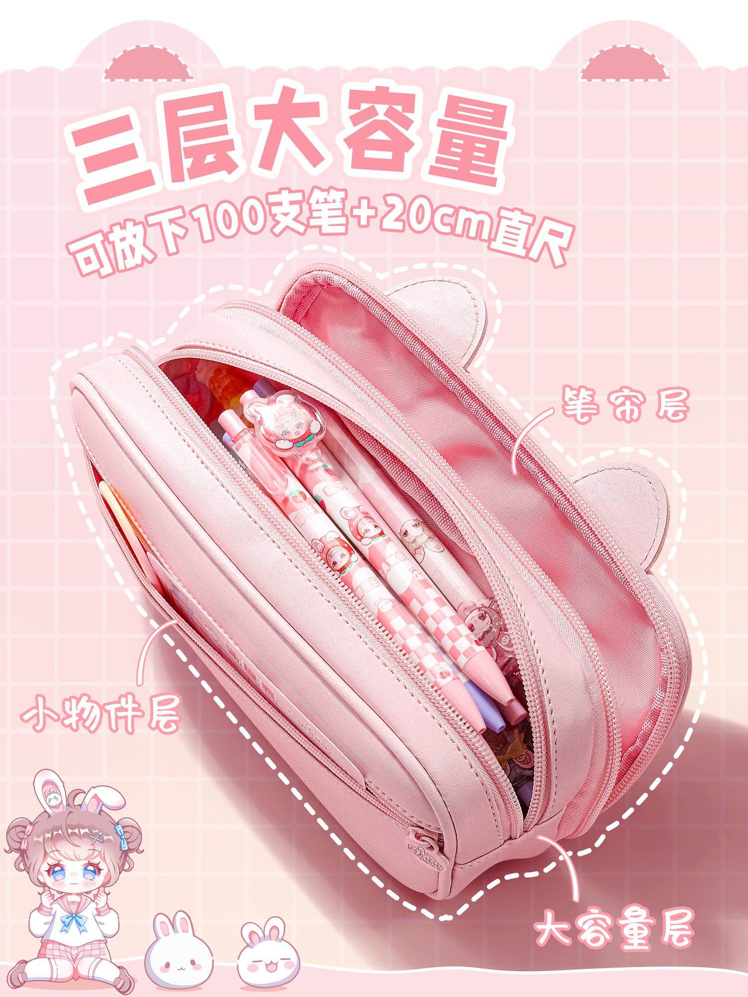 折耳妹妹创意立体猫耳笔袋女生文具盒女孩款小学生网红文具盒铅笔