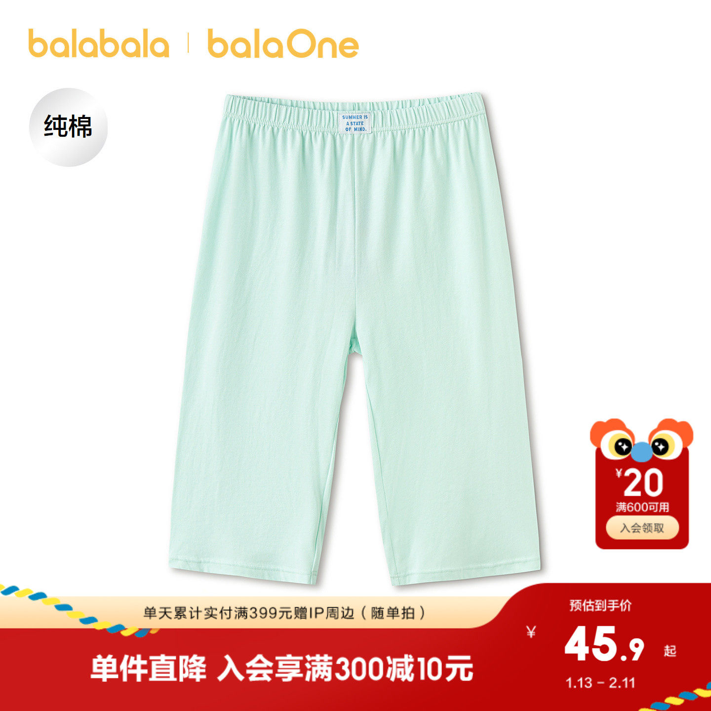 【balaOne】巴拉巴拉童装儿童裤子男女童睡裤夏新品防着凉防蚊裤