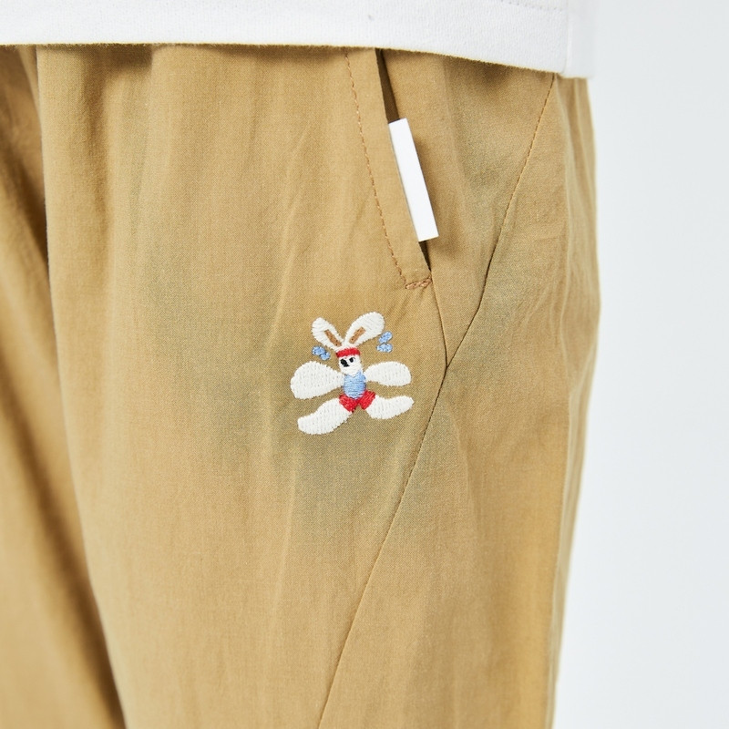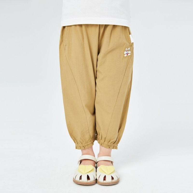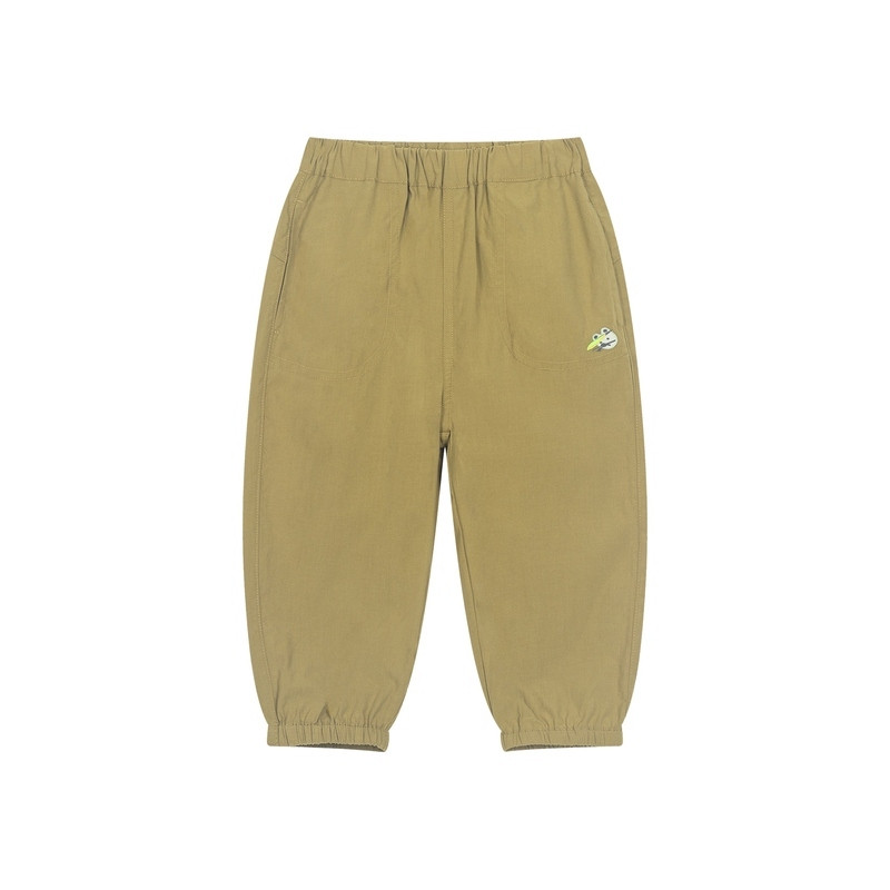 梭织防蚊裤,脚口木耳边设计,袋口精致绣花