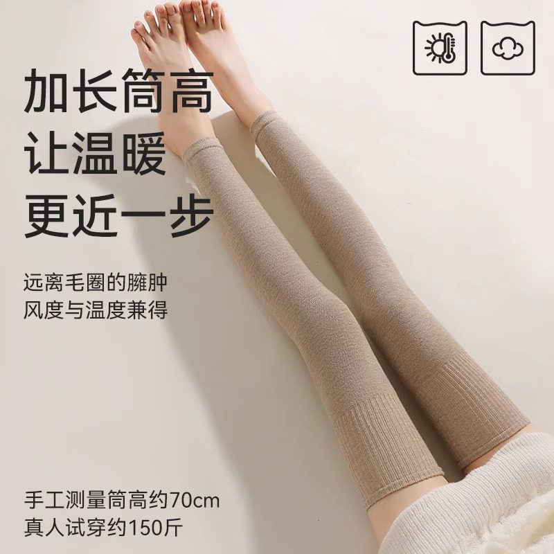 过膝袜子女秋冬羊毛长筒袜加厚保暖护膝大腿袜纯棉压力显瘦高筒袜