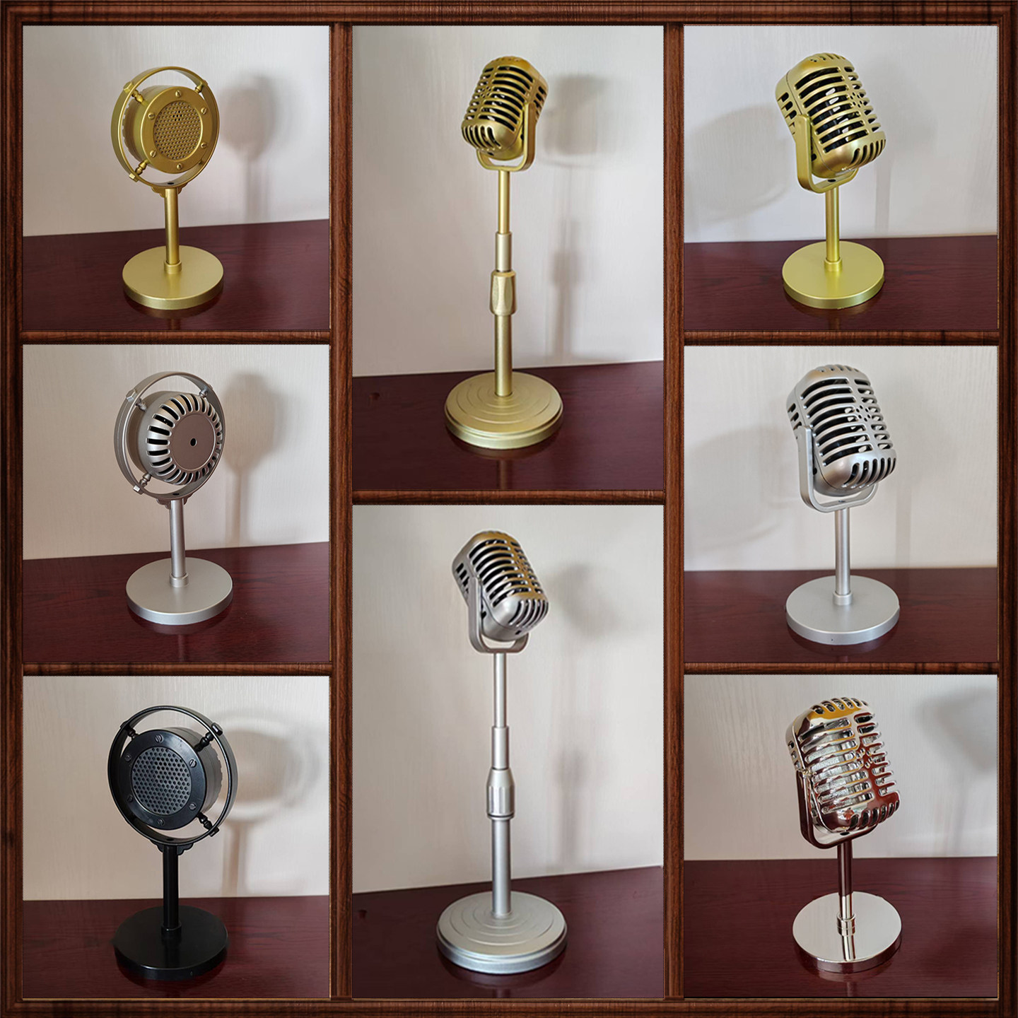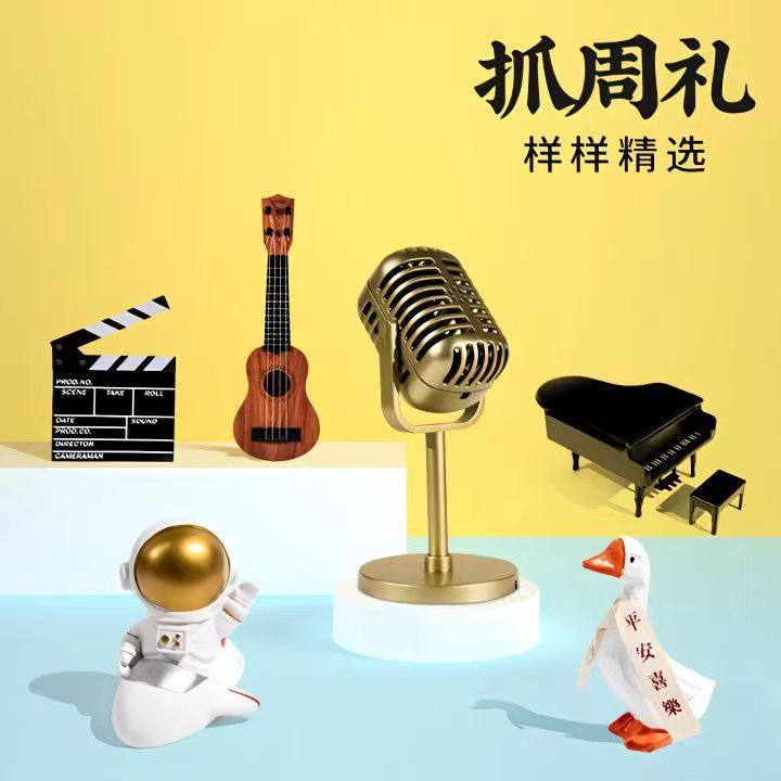 麦克风道具儿童抓周复古港风拍照立麦落地三脚桌面小摆件话筒模型
