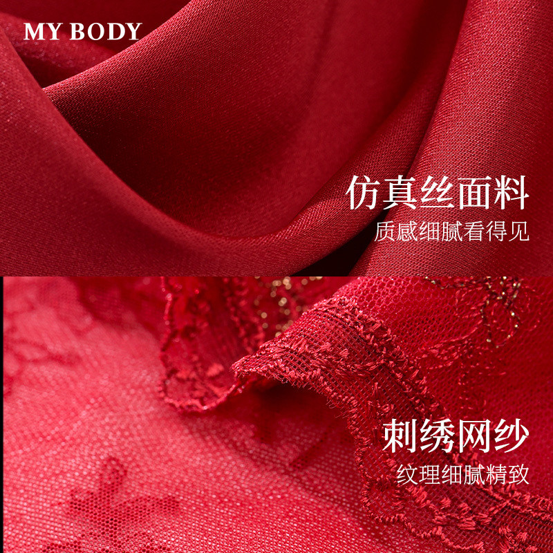 商场同款MYBODY吊带睡裙睡袍高级感刺绣蕾丝带胸垫可外穿家居服女