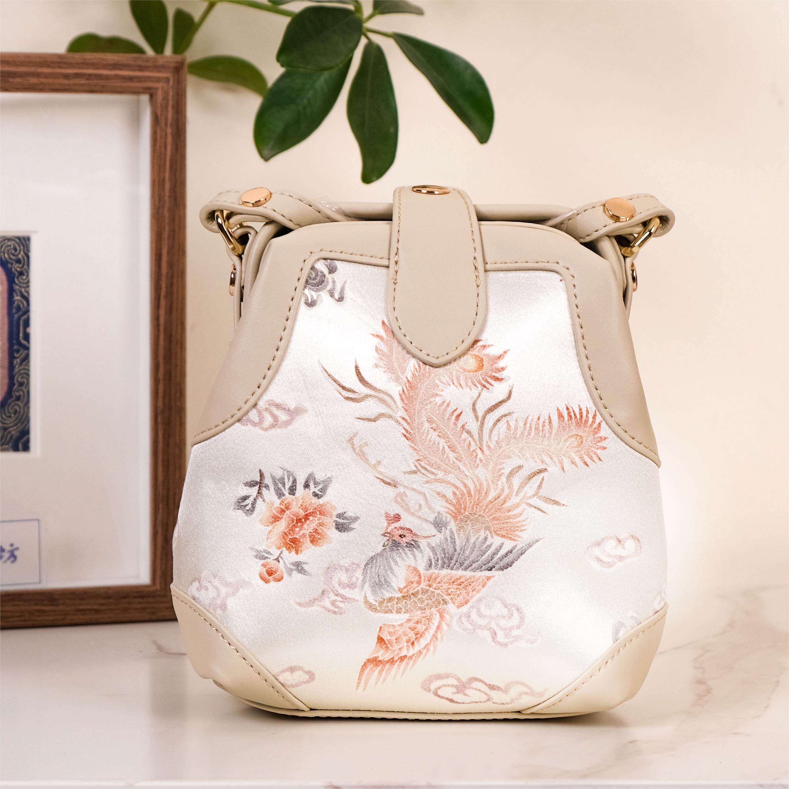 中国风宋锦香云纱手提单肩斜挎绣花真丝真皮