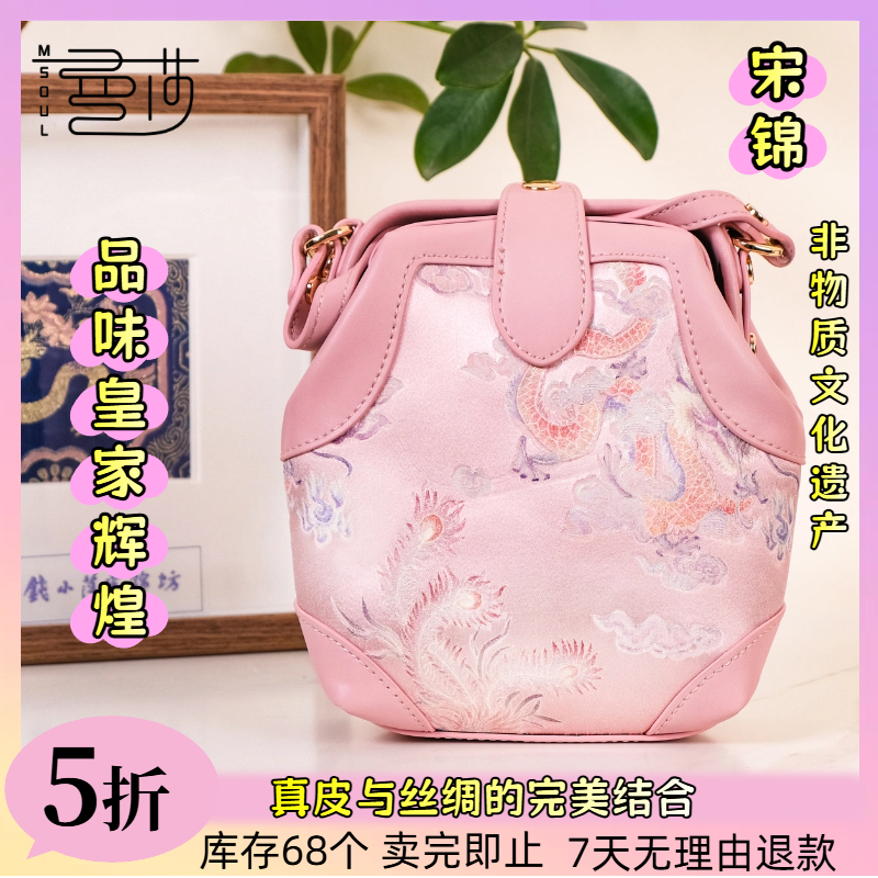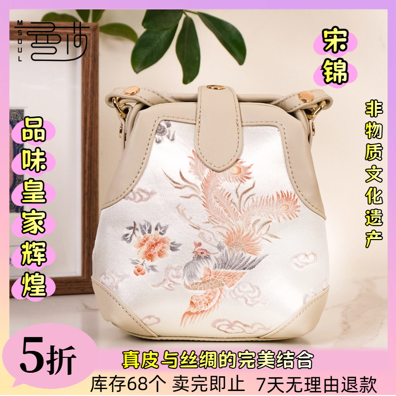 曼莎中国风宋锦香云纱手提单肩斜挎刺绣真丝牛皮新款女包2365