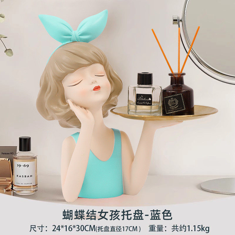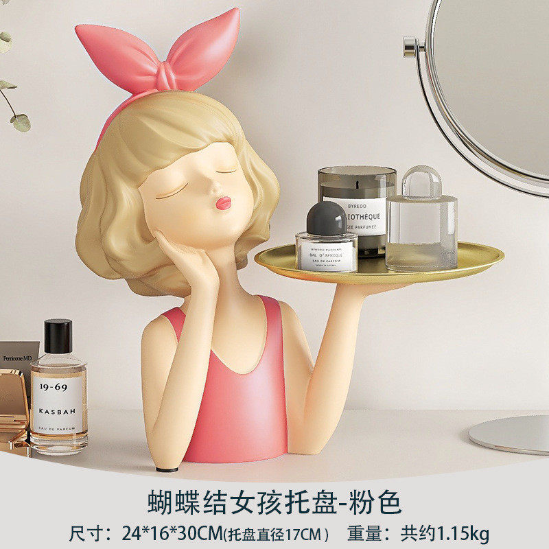 蝴蝶结女孩托盘摆件钥匙玄关鞋柜客厅桌面卧室收纳家居软装装饰品