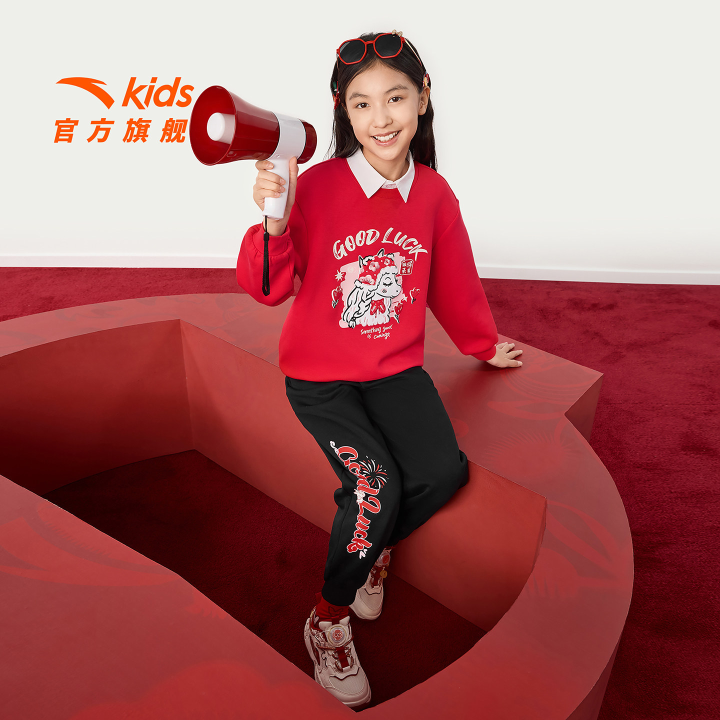 【马年红色新年】安踏女童套装卫衣卫裤时尚两件套拜年衣服2026款