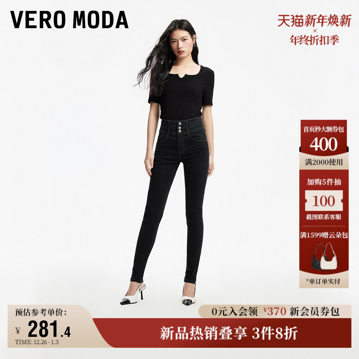 Vero Moda奥莱牛仔裤子女秋冬新款高腰三粒扣宽腰头小脚裤休闲