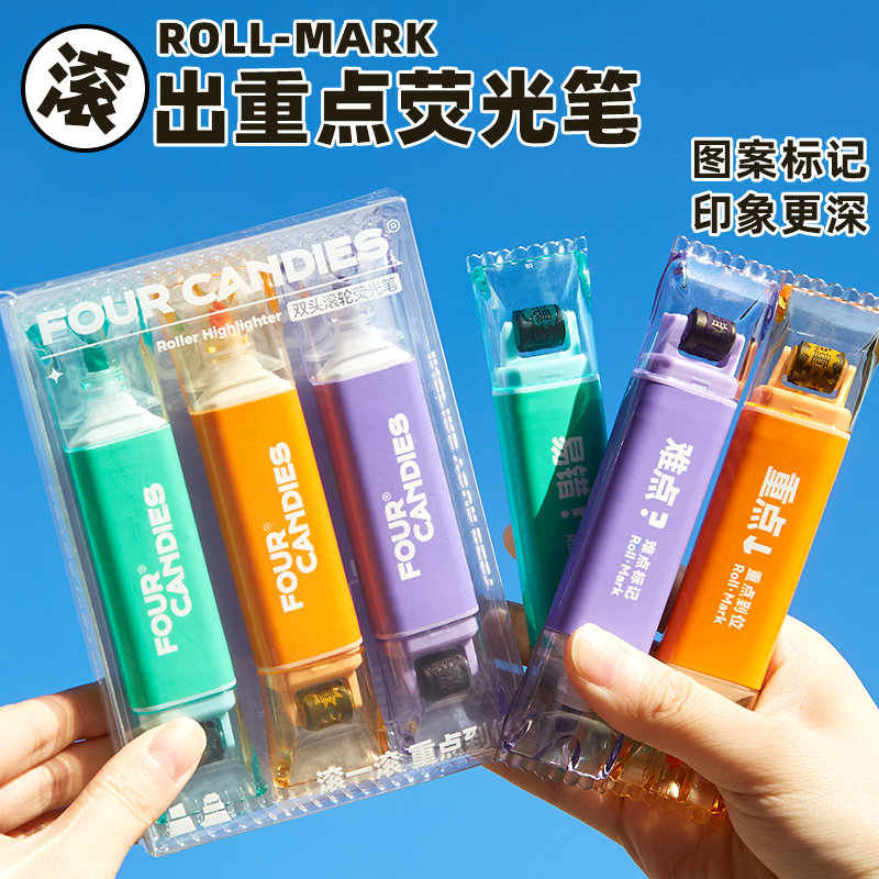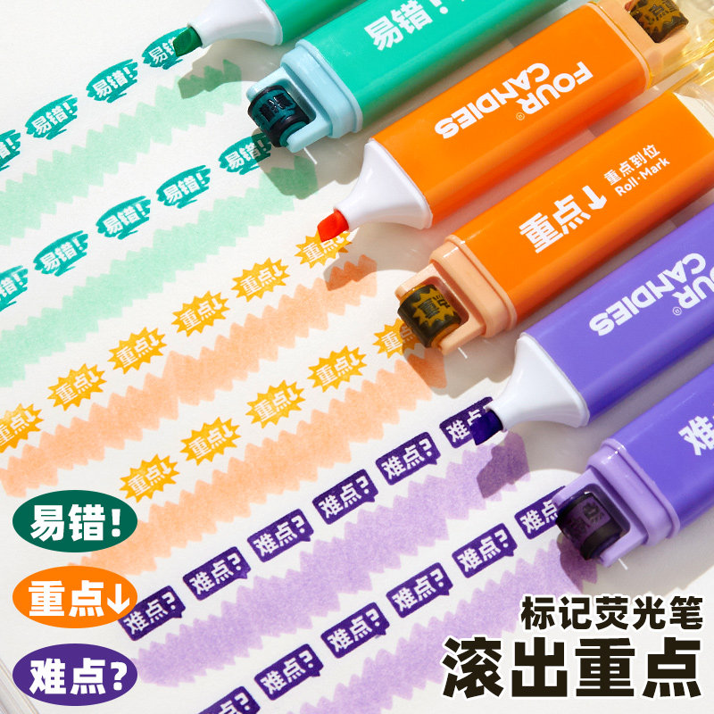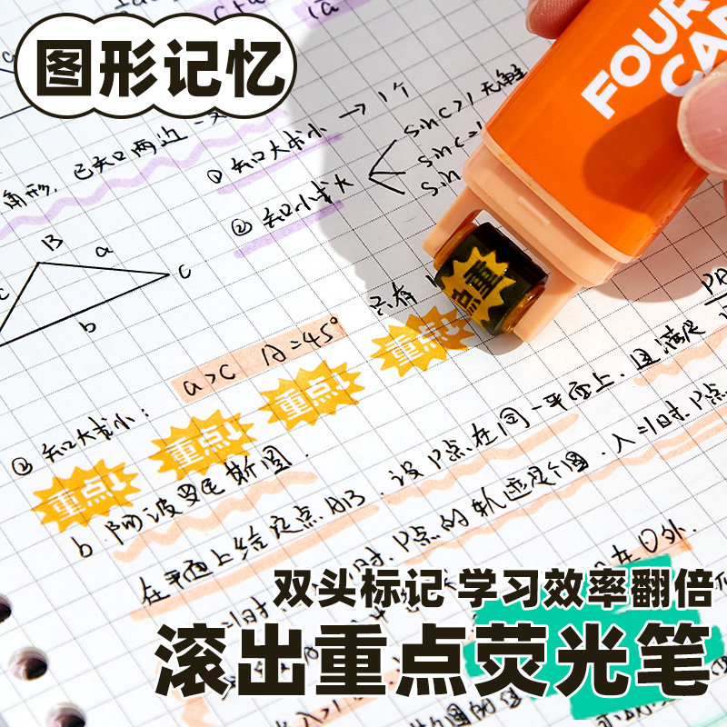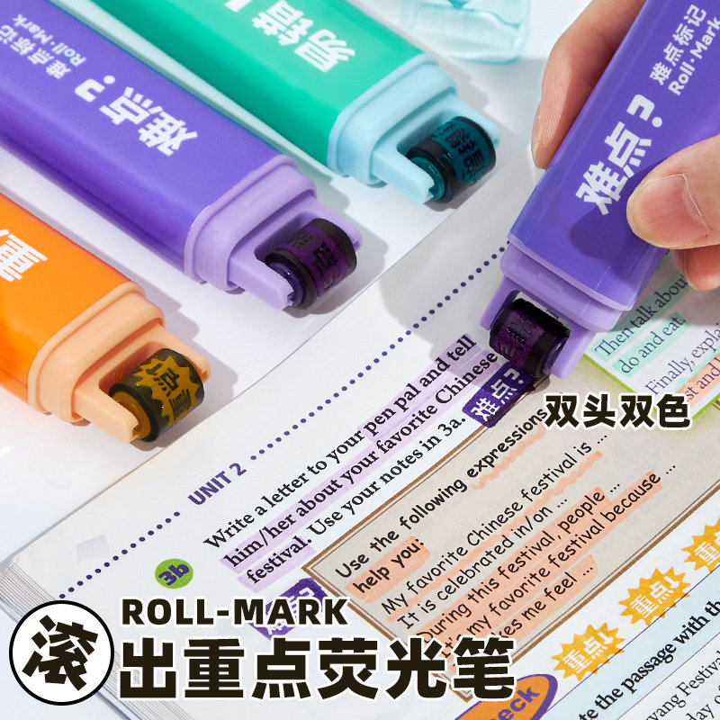 【高效错题整理】小槑同学双头荧光笔小学生专用彩色划重点记号笔初中生滚轮式重点标记笔错题分类标记荧光笔