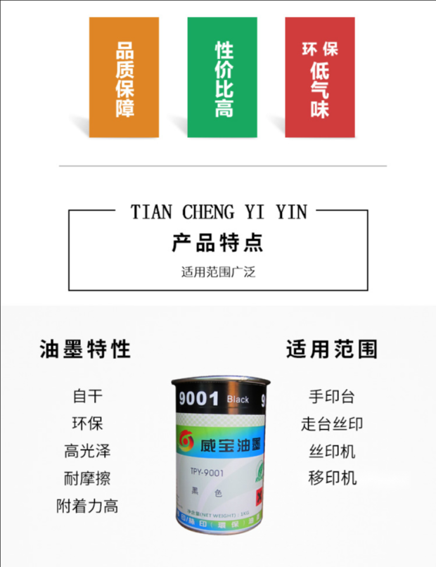 环保丝印移印金属玻璃通用油墨 免处理PP ABS PS塑胶皮革油墨调色