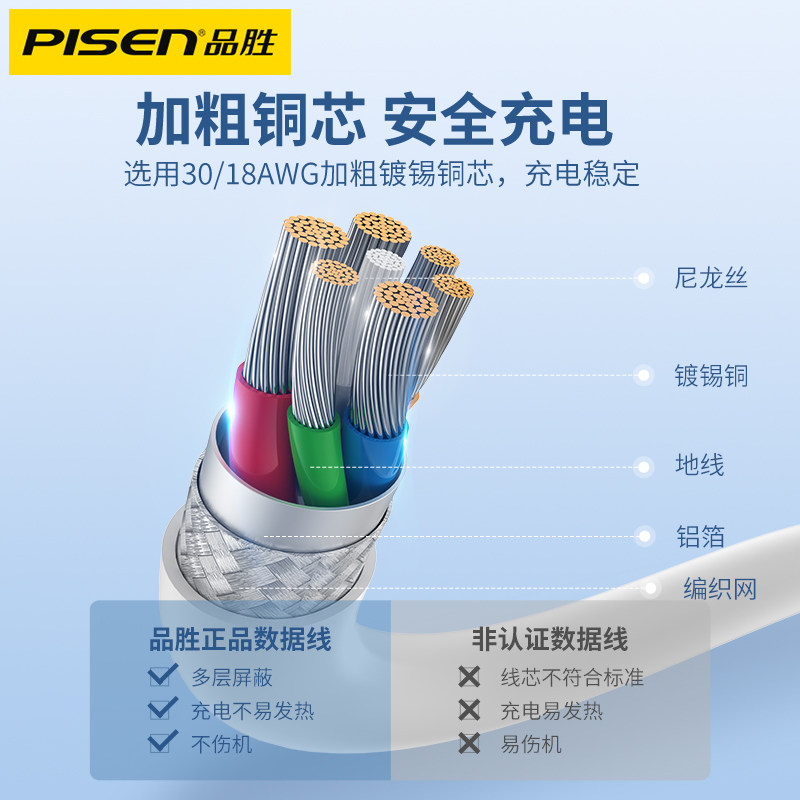 品胜适用iPhone15数据线14苹果11充电线器12proMax手机PD快充13加长快速车载iPad平板6s闪充30W冲8p正品7plus