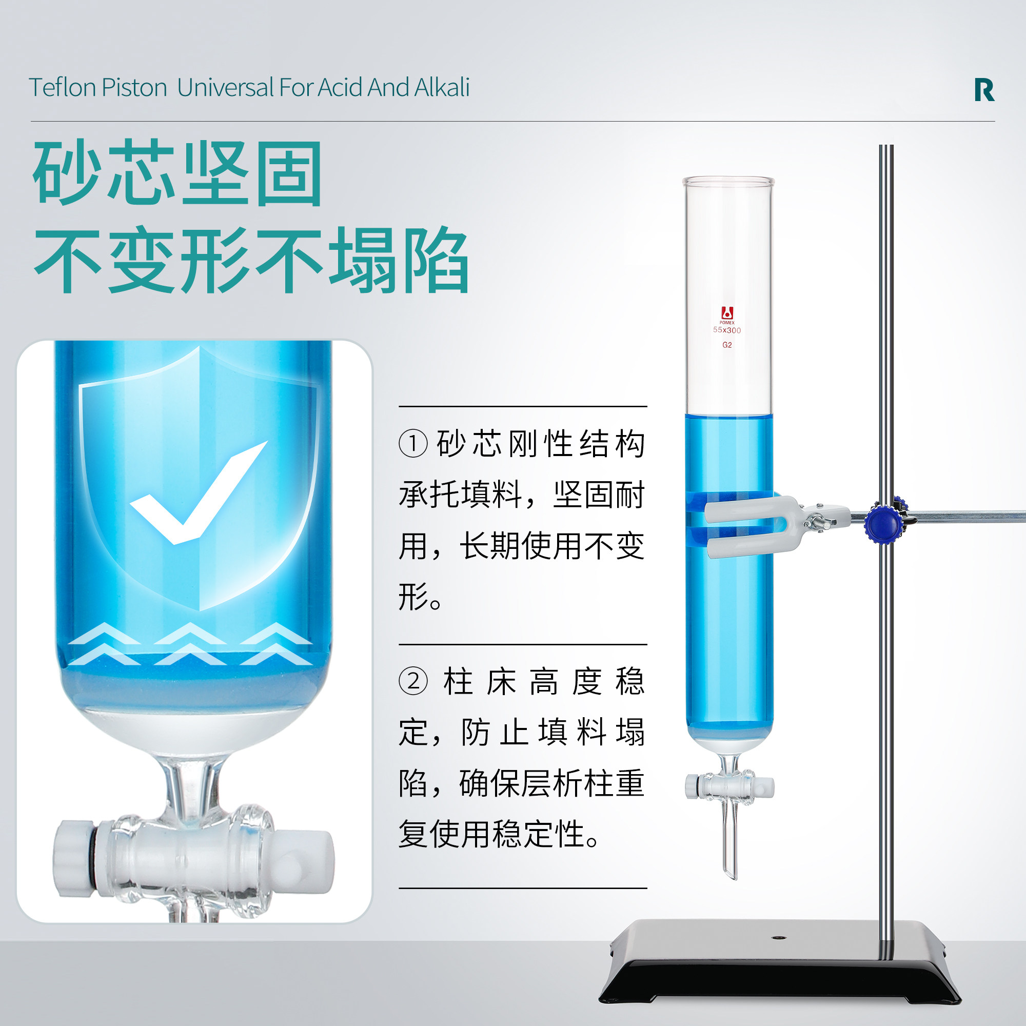 玻璃砂芯层析柱 广口 敞口 卷边口 具砂芯片 聚四氟阀门 层析柱色层分析柱 过滤柱 树脂吸附柱 交换柱 可定制