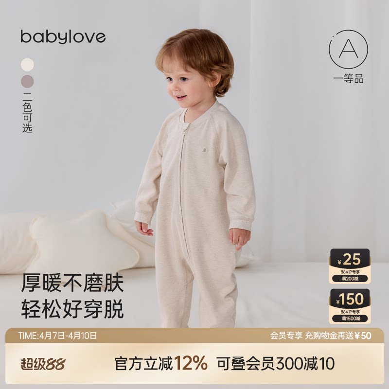 babylove婴儿连体衣春秋季斜襟拉链哈衣爬服宝宝休闲外出居家衣服