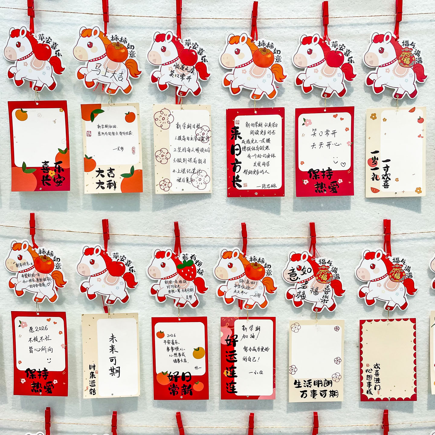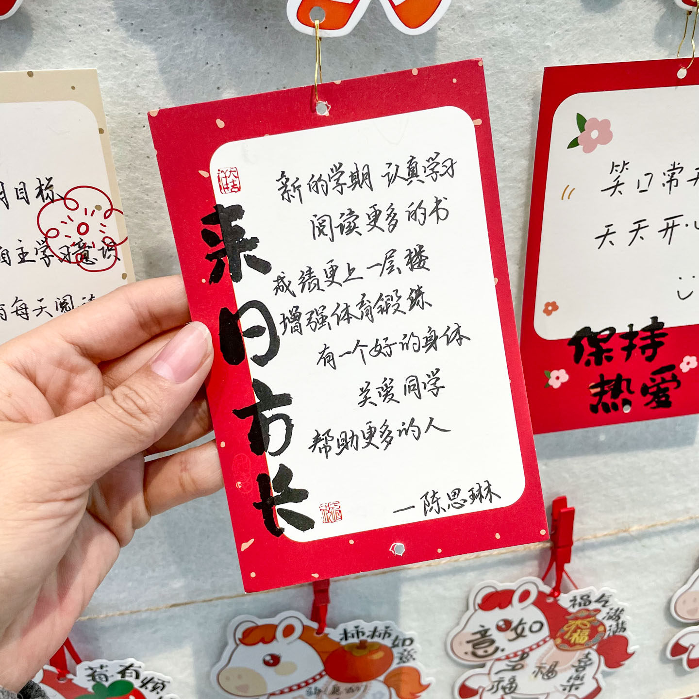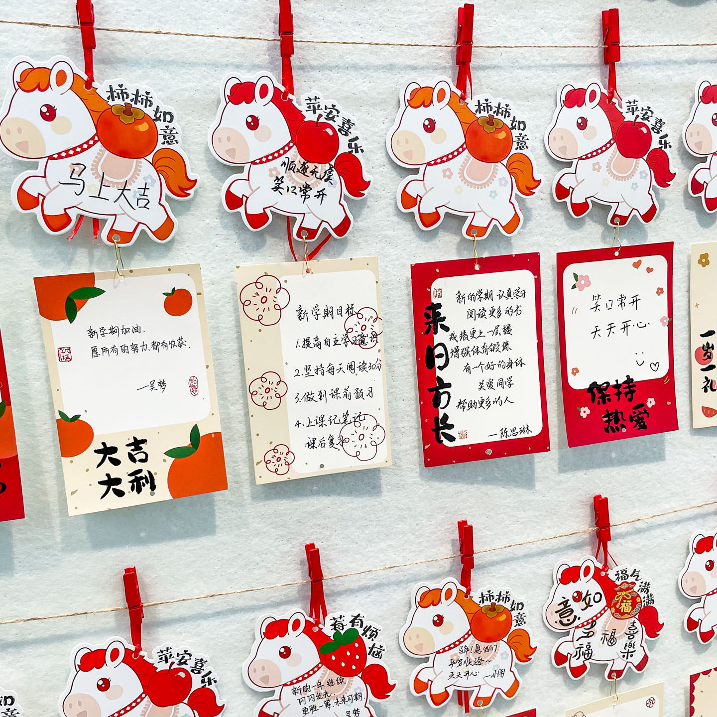 2026马年开学目标心愿望墙贴diy装饰吊卡一年级小学生儿童手写祝福许愿卡片悬挂新学期激励学习计划梦想贺卡