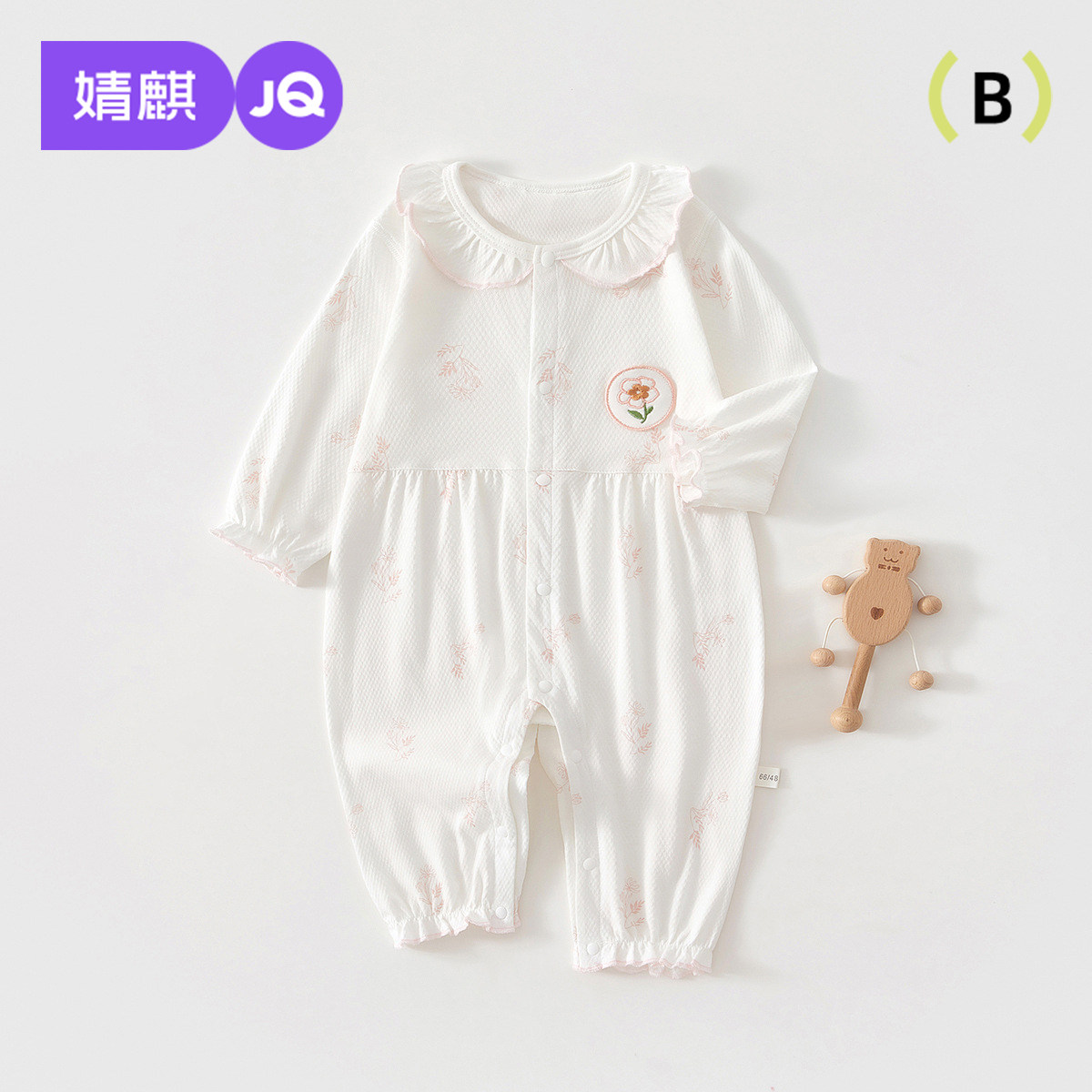 婧麒婴儿衣服夏季薄款对开长袖空调服新生儿娃娃领宝宝连体衣
