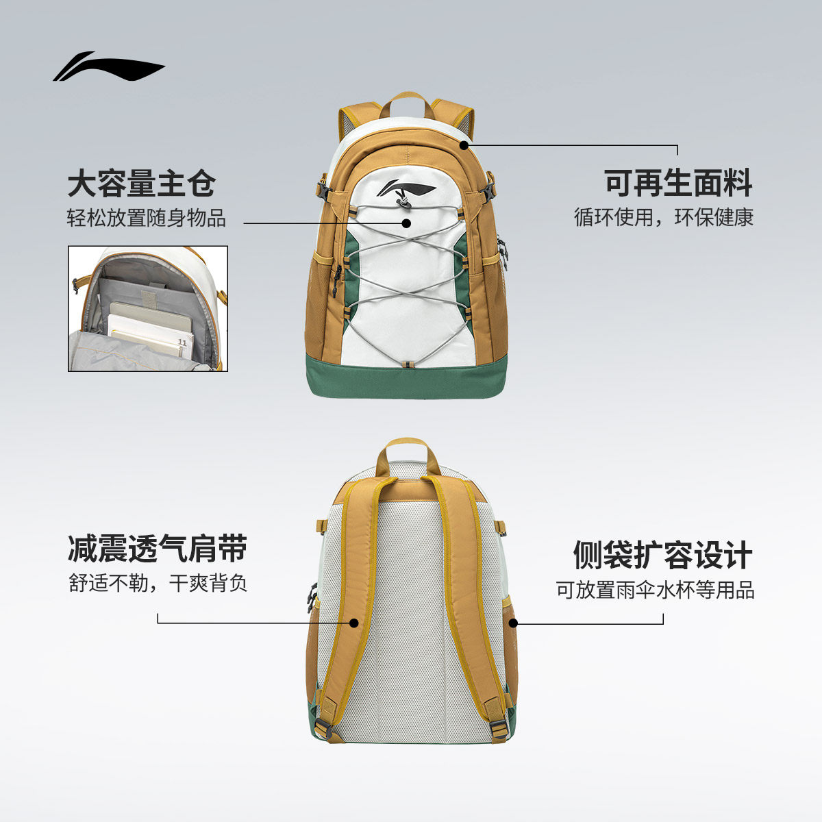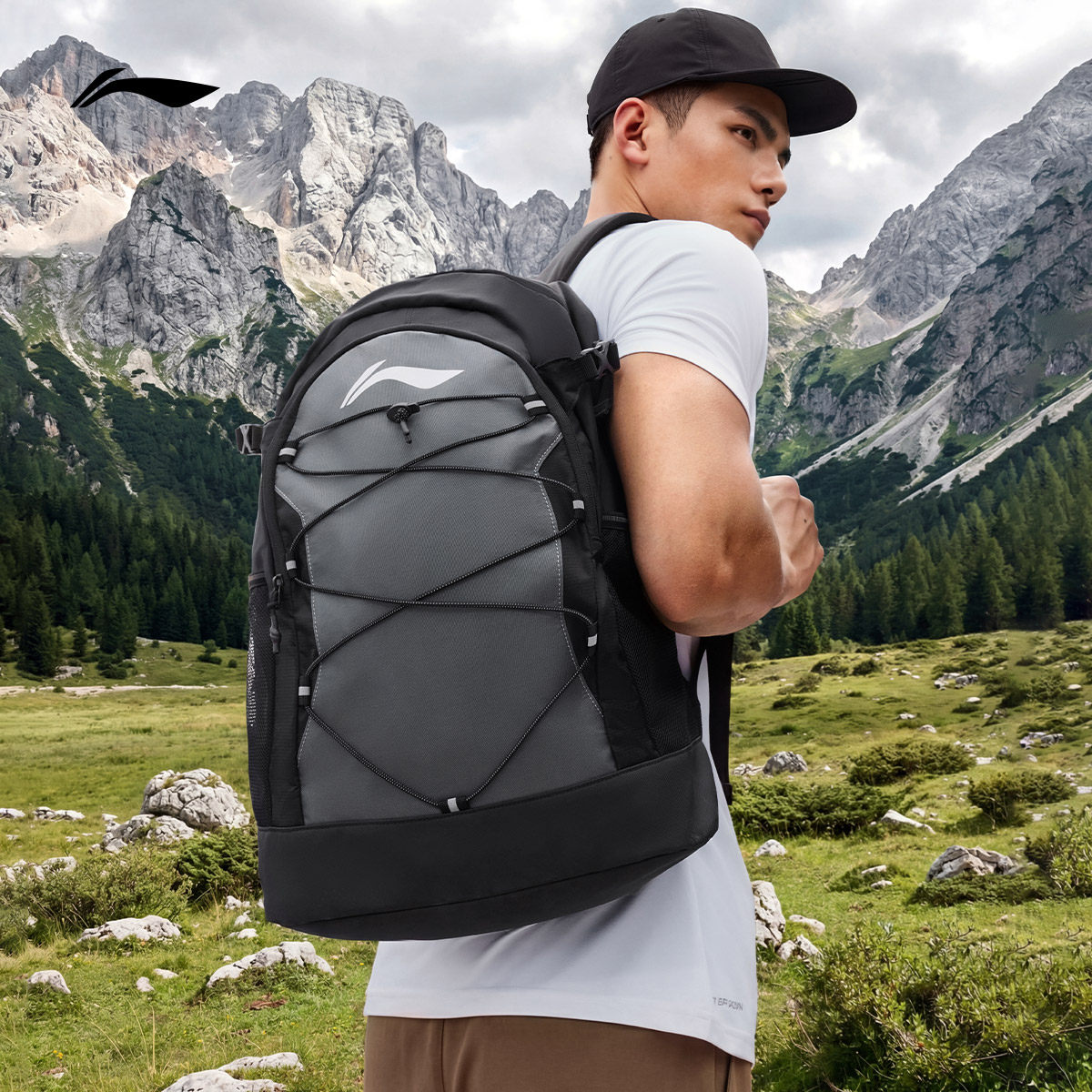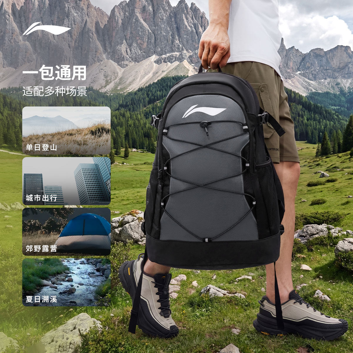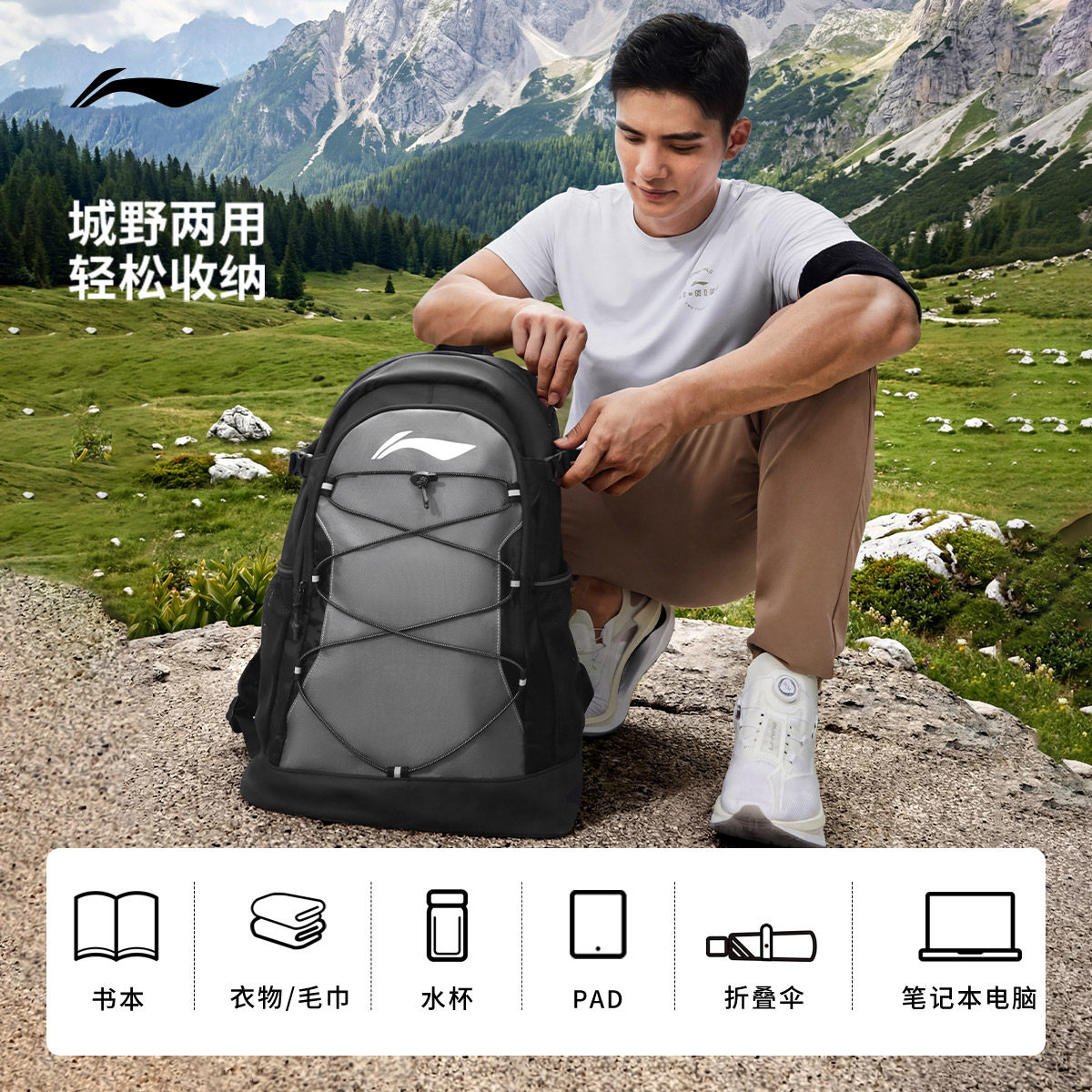 李宁双肩包男士正品轻便户外登山包运动背包旅游大容量学生书包女
